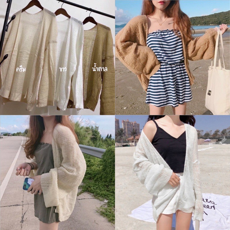 เสื้อไห มพรมแขนยาวคลุมไปทะเล คาร์ดิแกนกันแดดกันหนาว งานจริงน่ารัก