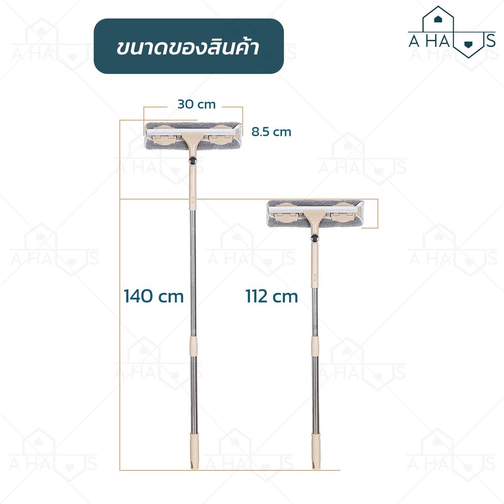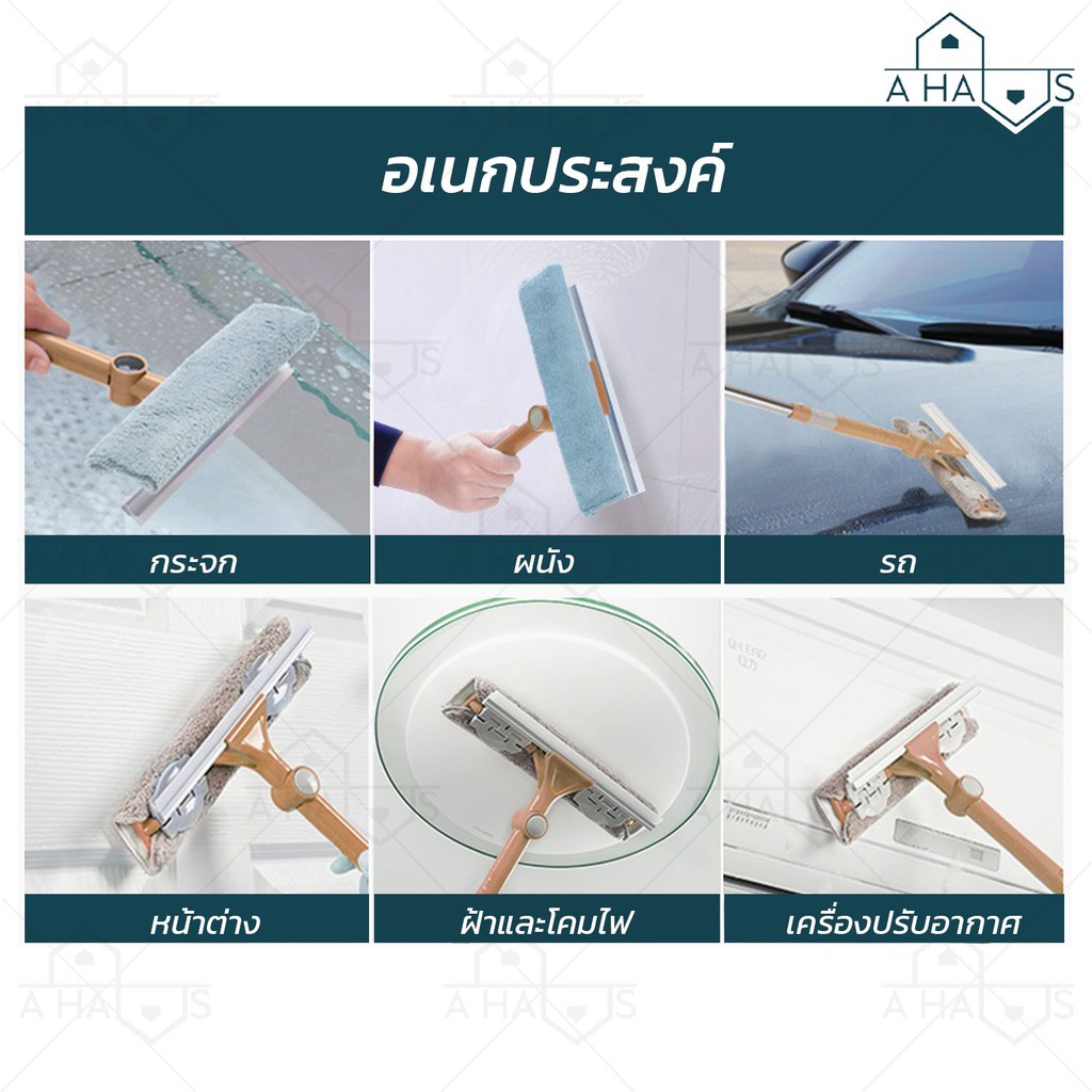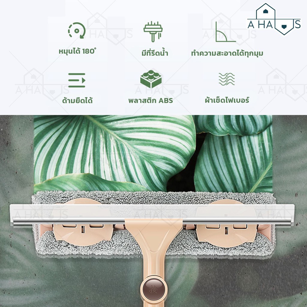 A HAUS ที่เช็ดกระจก ไม้เช็ดกระจก ไม้เช็ดกระจกแบบยาว ปรับได้ 140 ซม พร้อมที่กรีดน้ำ หมุนได้ 180° ผ้าไมโครไฟเบอร์ รุ่นใหม่