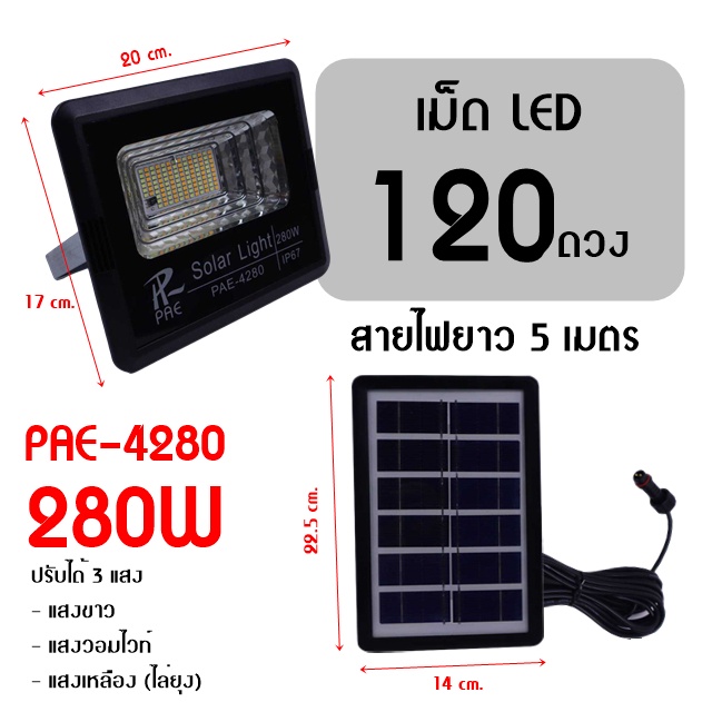 Solar light ไฟสปอร์ตไลท์ 260W 280W ไฟโซล่าเซลล์ กันน้ำกลางแจ้ง ป้องกันฟ้าผ่า สว่างอัตโนมัติเมื่อฟ้ามืด