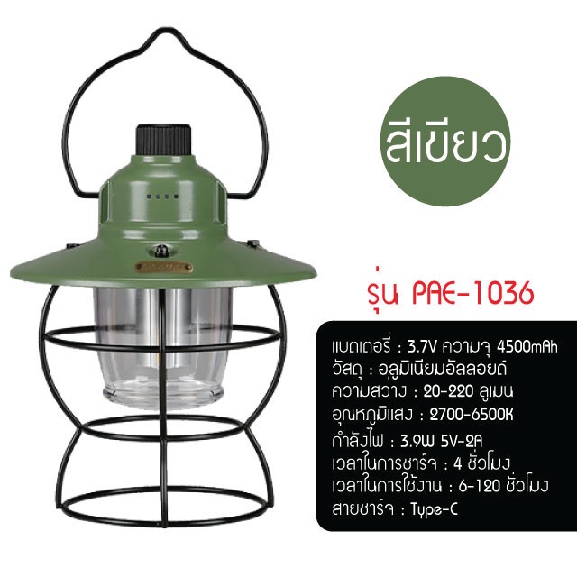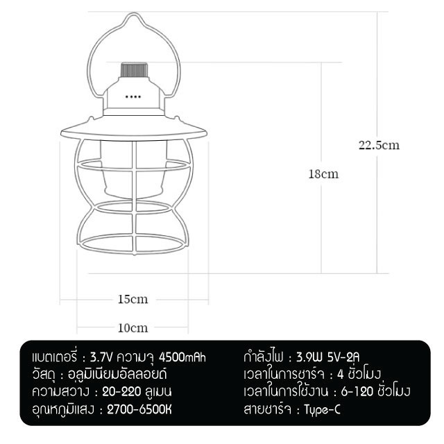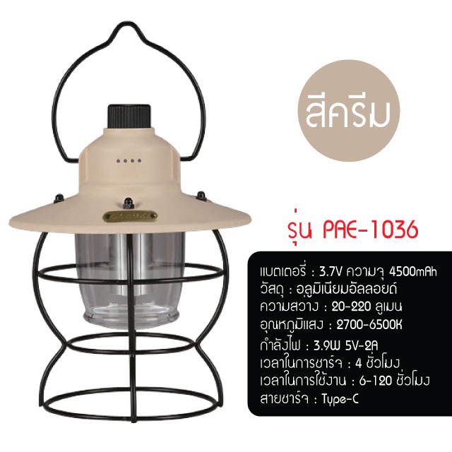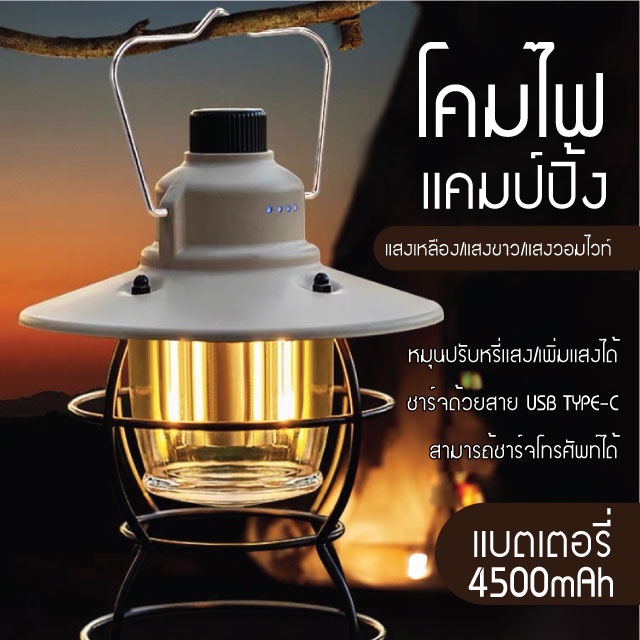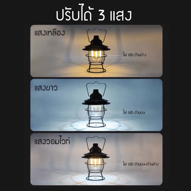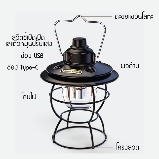 ตะเกียง LED ตะเกียงแคมปิ้ง ไฟแคมปิ้ง USB ชาร์จ IPX4 กันน้ำ