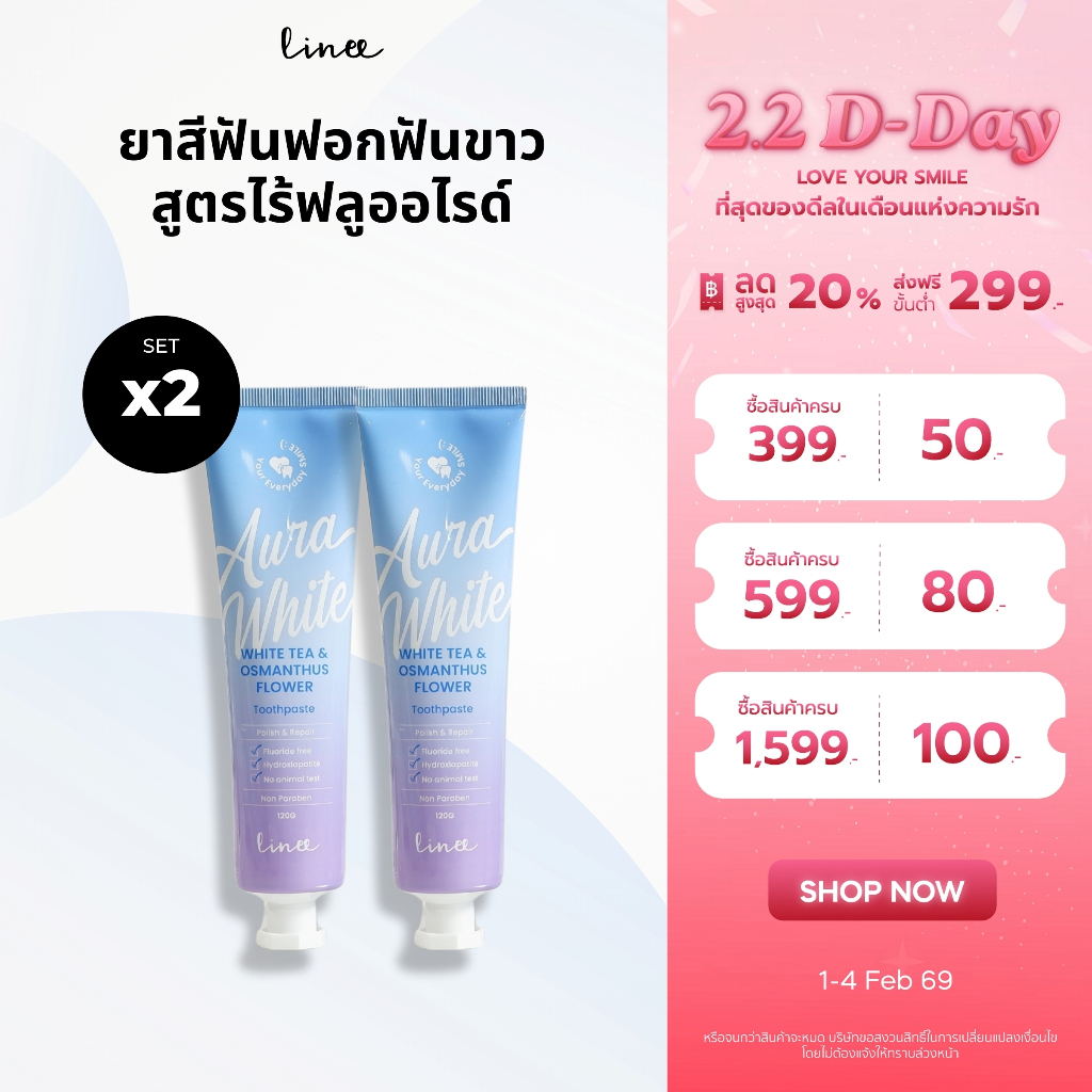 Linee Aura White ยาสีฟันลดคราบเหลือง ยาสีฟันลดคราบชากาแฟ ยาสีฟันฟอกฟันขาว รวมทั้ง 3 สินค้าตัวดังในหลอดเดียว ฟันขาว