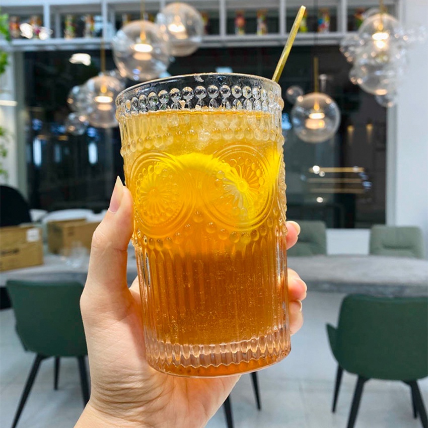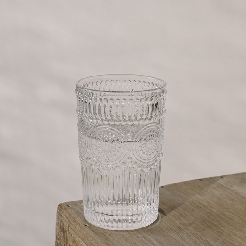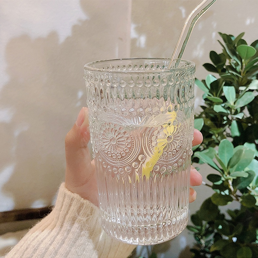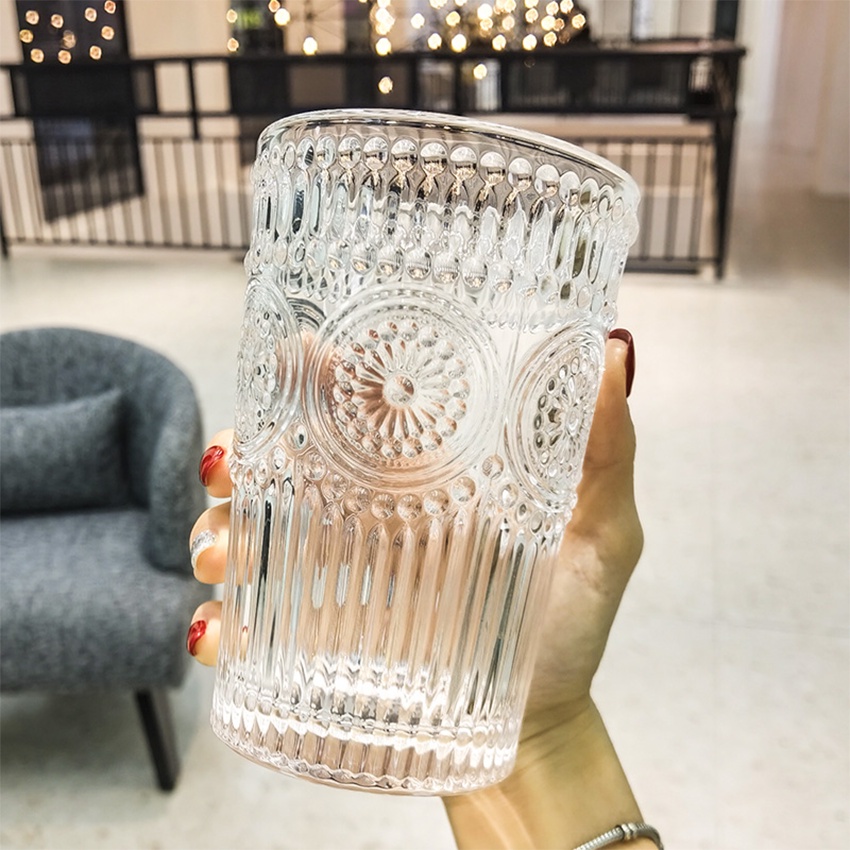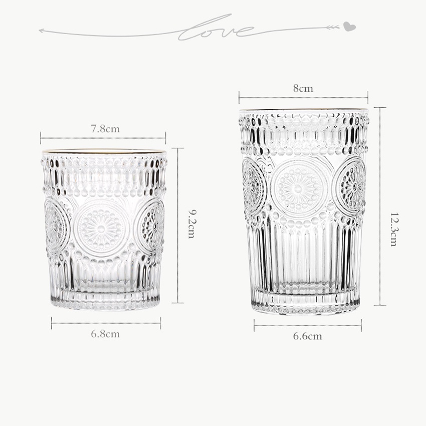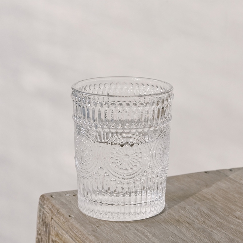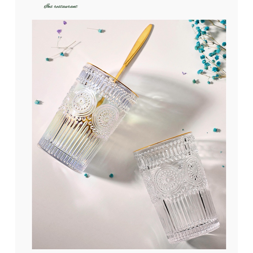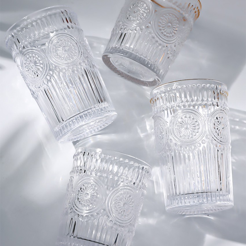 แก้ว แก้วน้ำดื่ม มีลาย จับถนัดมือ แบบหนา ลายดอกไม้
