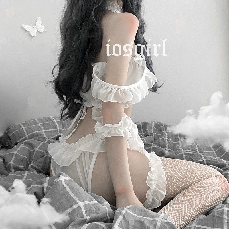 🔥ส่งไวจากไทย🔥ชุดนอน ชุดชั้นใน ผ้าชีฟองปักลายลูกไม้ เซ็กซี่ สําหรับสตรี:white,one size