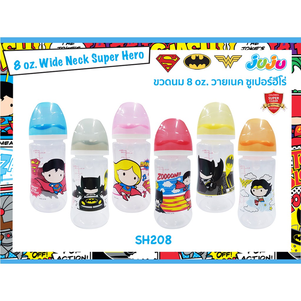 💥ถูกสุด💥SH209-SH208 ขวดนม 8 oz คอกว้าง/คอกว้าง ซูเปอร์ฮีโร่ พร้อมจุกนมลดการท้องอึด (🏅ลิขสิทธิ์แท้)
