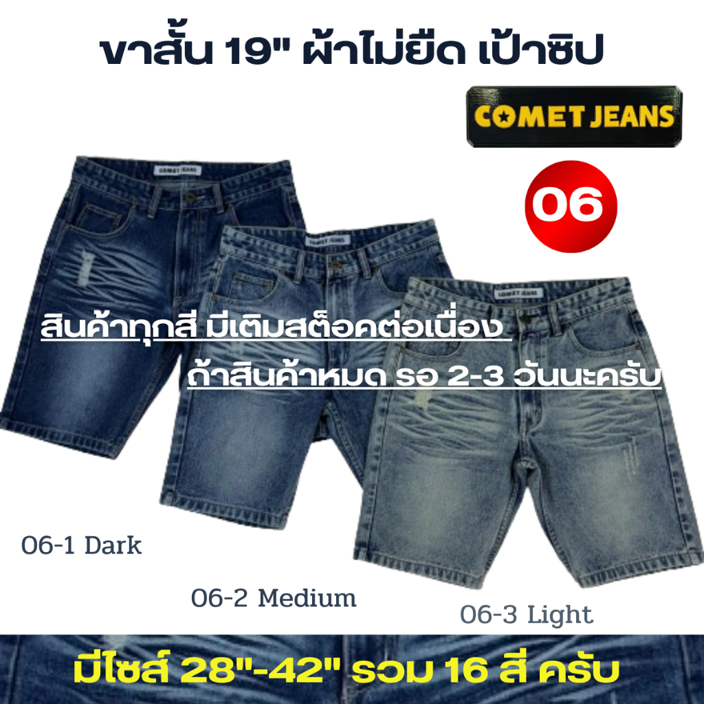COMET 06 กางเกงขาสั้นยีนส์ชาย เหนือเข่า แต่งเฟด สะกิดขาดหน้าหลัง (เป้าซิป) ยาว 19" ผ้ายีนส์เกรดพรีเมี่ยม (ผ้าไม่ยืด) มี