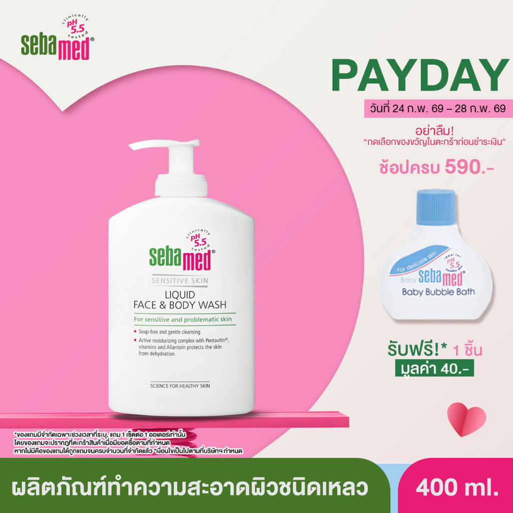 [ล็อตใหม่ EXP2028] SEBAMED LIQUID FACE&BODY WASH pH5.5 (400ML) ซีบาเมด ผลิตภัณฑ์ทำความสะอาดผิวชนิดเหลว (400มล)