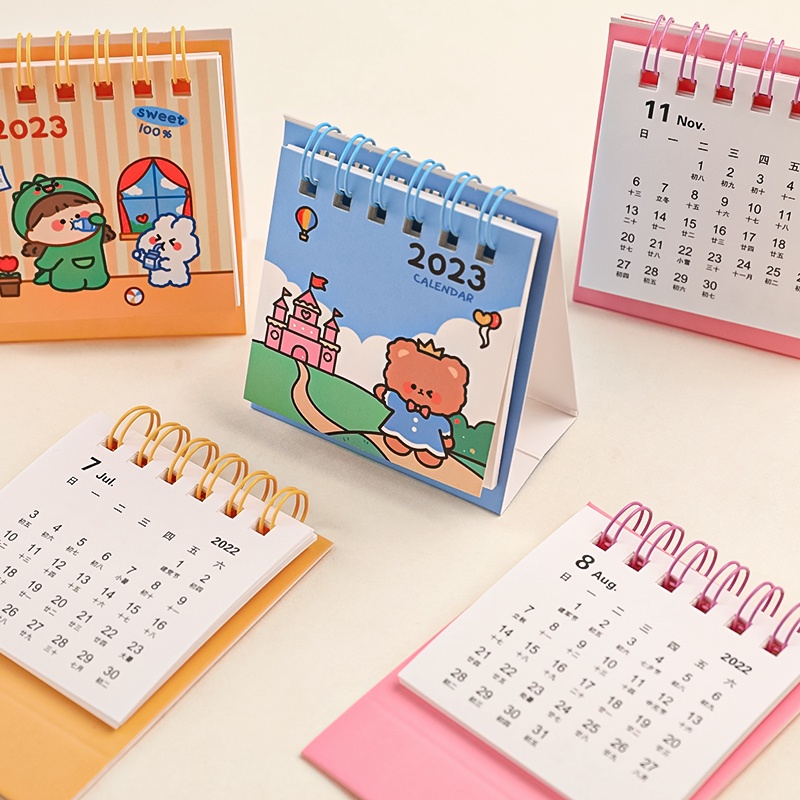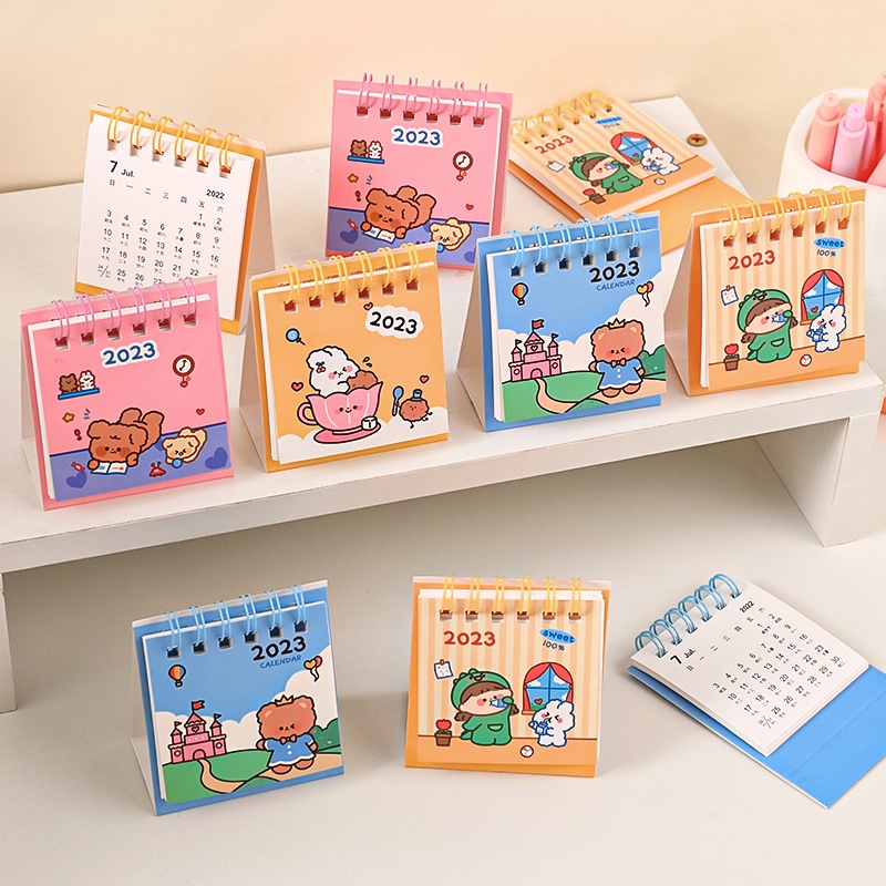 ปฏิทินตั้งโต๊ะ ขนาดเล็ก ลายการ์ตูน สําหรับสํานักงาน โรงเรียน ปี 2023
