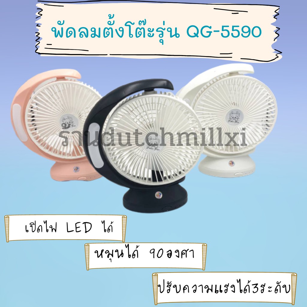 🌈พัดลมตั้งโต๊ะ ปรับได้ 3 ระดับ พัดลมรุ่น QG-5590 แถมแบทเตอร์รี่ให้ 1 ก้อน แถมฟรีสายชาร์จUSBชาร์จพัดลม1สาย ✨✨