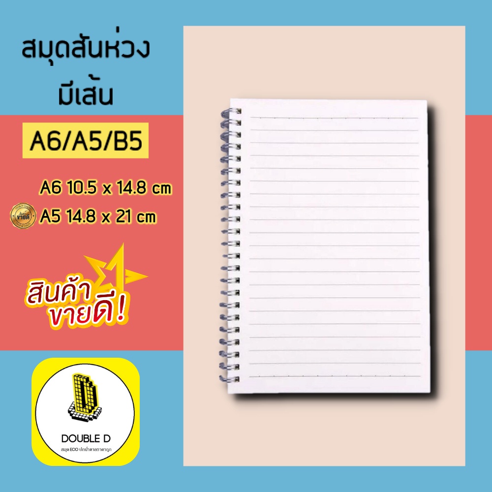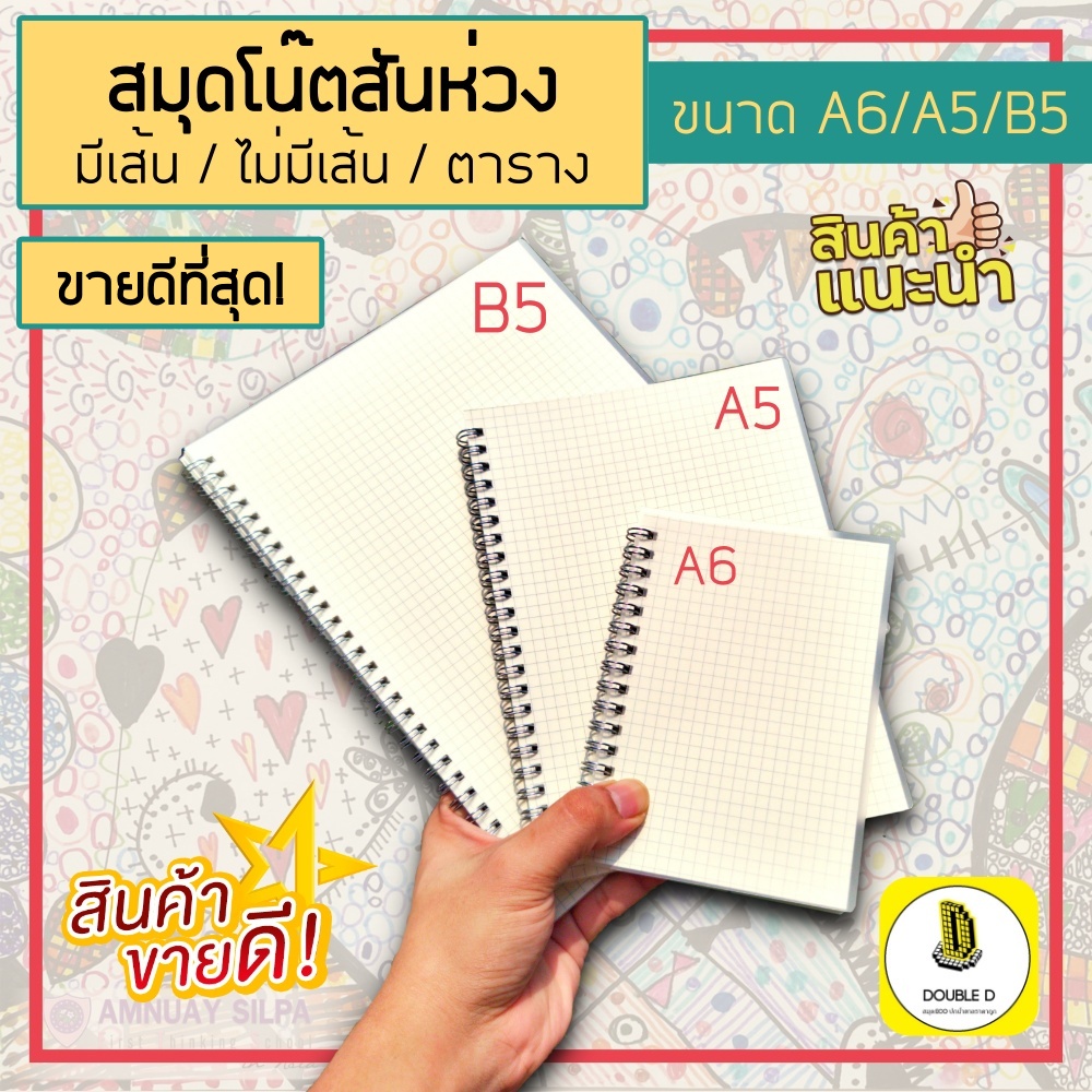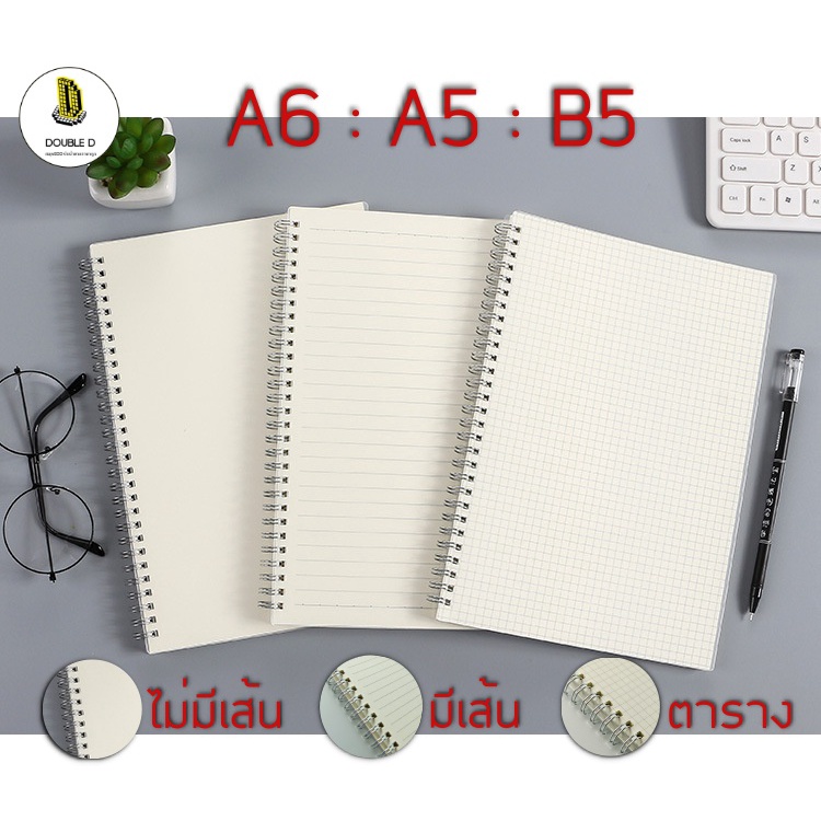 สมุดโน๊ตสันห่วง สมุดโน๊ตริมลวด สันห่วงมินิมอล ปกใส A6 A5 B5 สมุดโน๊ตมีเส้น เส้นกราฟเส้นตาราง SWATGadget DoubleD