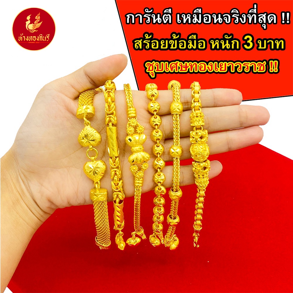 Kinnaree สร้อยข้อมือ 3 บาท ชุบเศษทองเยาวราช ไม่ลอก ไม่ดำ รับประกัน 6 เดือน ข้อมือทอง ทองปลอม ทองปลอมเหมือนแท้