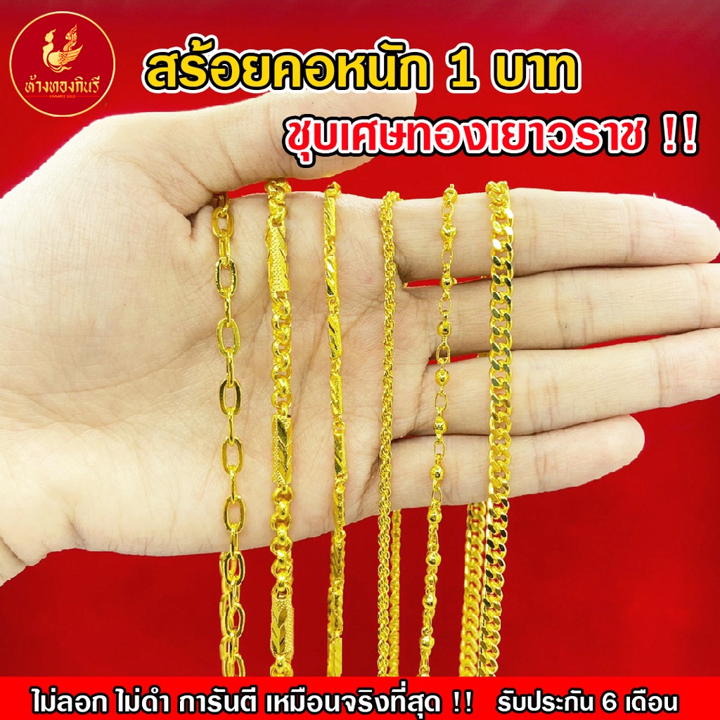 Kinnaree สร้อยคอ 1 บาท ชุบเศษทองเยาวราช เหมือนแท้ 100% ไม่ลอก ไม่ดำ รับประกัน 6 เดือน สร้อยทอง สร้อยคอทอง ทองปลอม