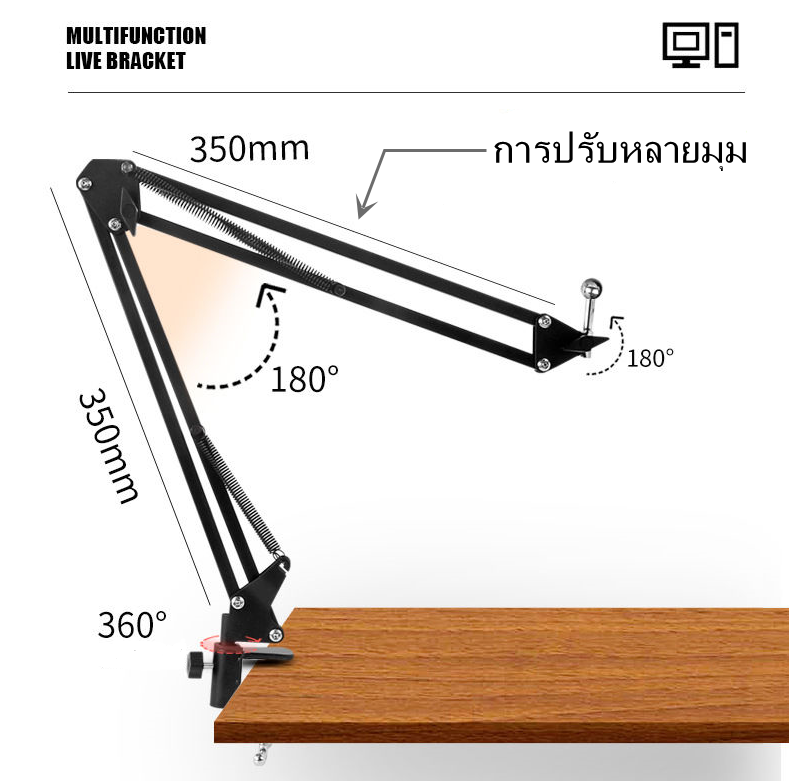 new แขนจับมือถือและแท็ปแล็ต ก้านจับมือถือ ยืดได้ พับได้ ปรับได้หลายมุม ติดตั้งง่ายที่หัวเตียง โต๊ะ