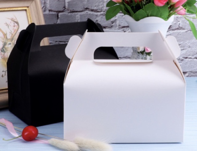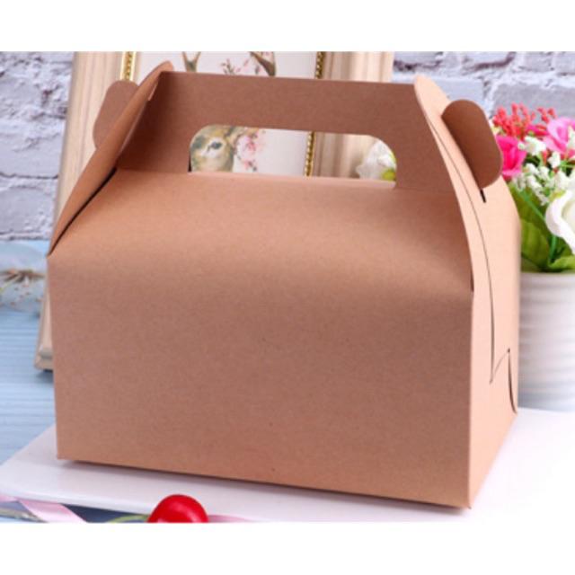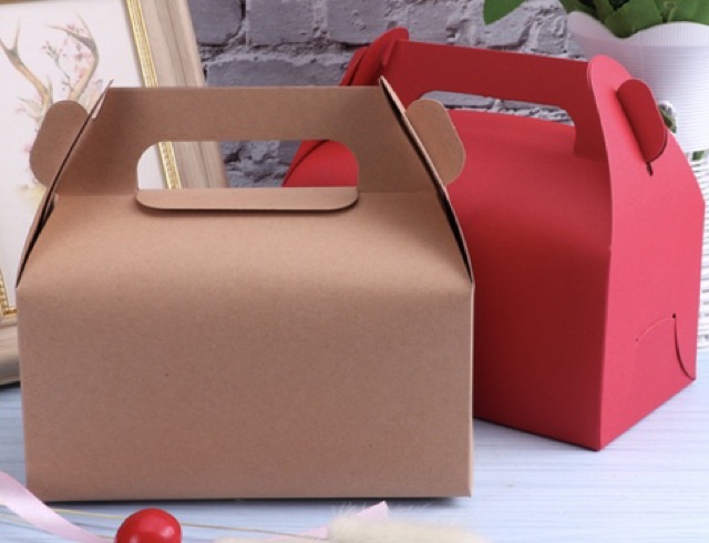 กล่องเบเกอรี่พร้อมหูหิ้ว ขายตั้งแต่ 1 ใบ ✅ กล่องคราฟท์ บรรจุภัณฑ์พกพาใส่เค้กสีพื้นสวยงามสะดุดตา