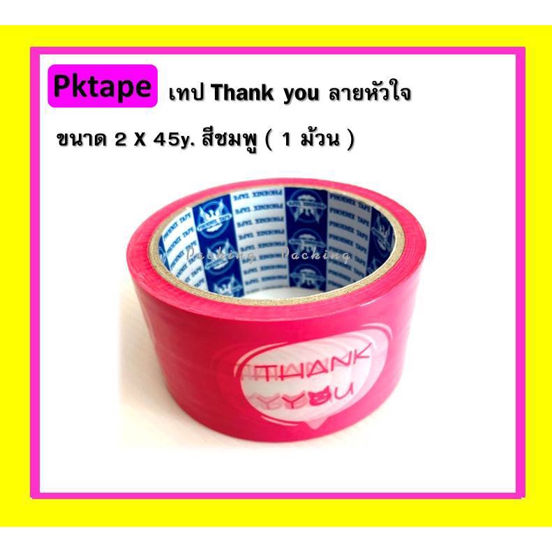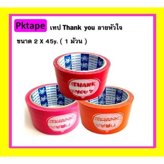 เทป THANK YOU (ลายหัวใจ) เทปติดกล่อง ขนาด 2 นิ้ว ยาว 45 หลา หนา 50 ไมครอน (1ม้วน)