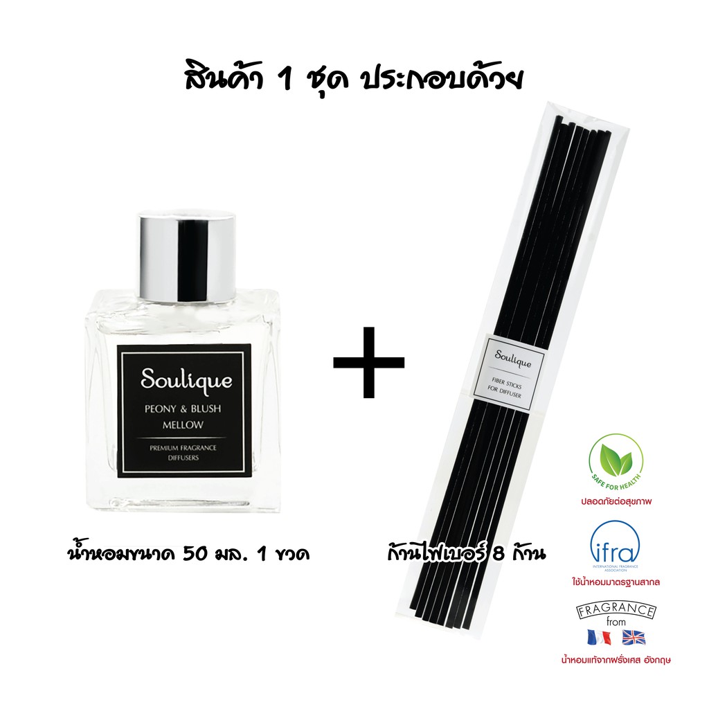 กลิ่นเคาน์เตอร์แบรนด์ • ก้านไม้หอมปรับอากาศ เกรดพรีเมี่ยม;น้ำหอมจากฝรั่งเศส (Reed Diffuser Set 50ml)