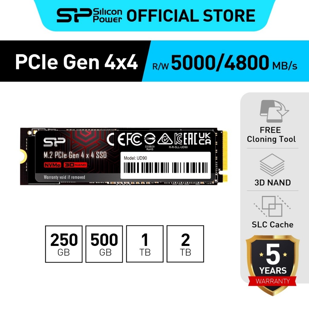 Silicon Power SSD (เอสเอสดี) M.2 NVMe 250GB/ 500GB/1TB/2TB - PCIe Gen 4x4 2280 รุ่น UD90 สำหรับ Laptop/PC รับประกัน 5 ปี
