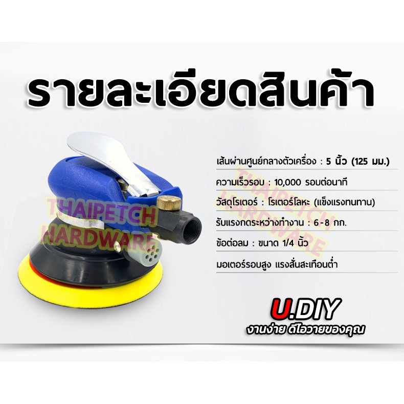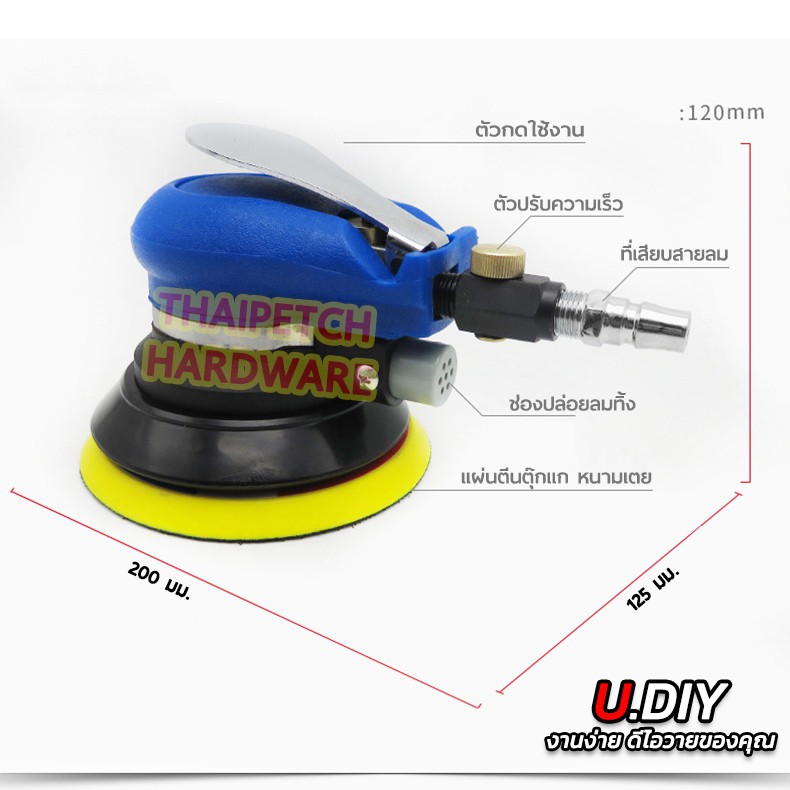 เครื่องขัดกระดาษทรายกลม เครื่องขัดใช้ลม เจียร์ลม U.DIY ขัดสีรถยนต์ ขัดไม้ ขัดข้อเหวี่ยง