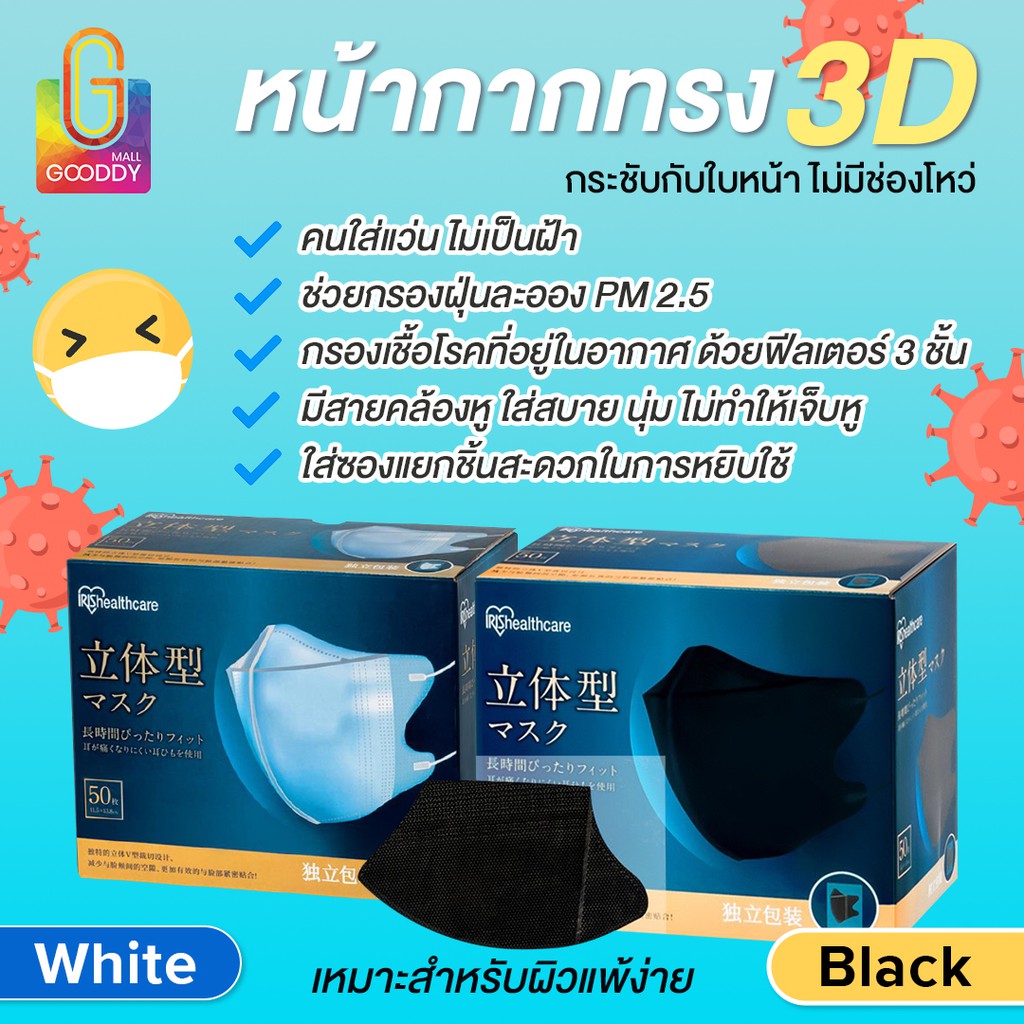 หน้ากากอนามัย IRIS OHYAMA ทรง 3D กันแบบ 360 องศา (กล่องละ 50 ชิ้น) Code : HWB57MK ลดทันที 30.-