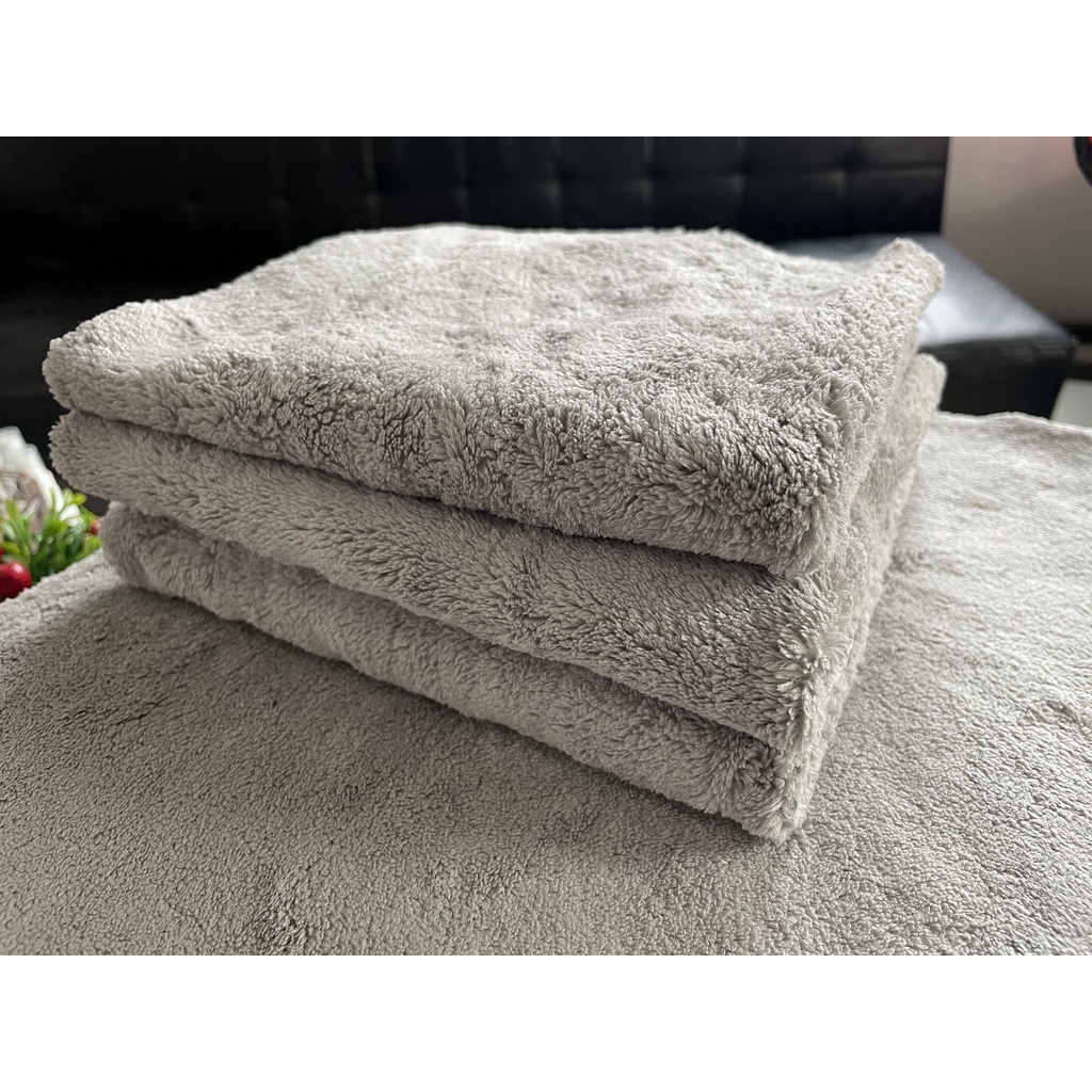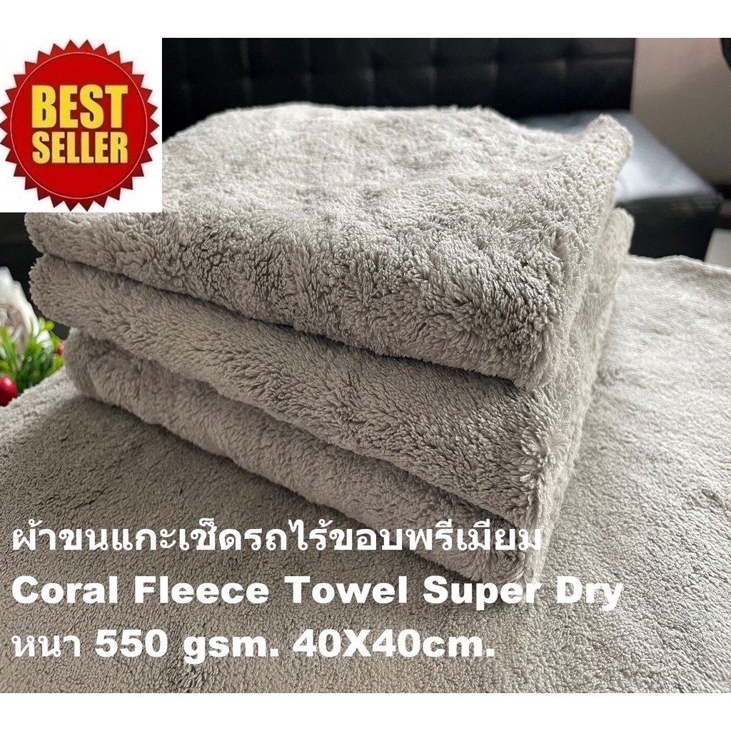 ผ้าขนแกะเช็ดรถไร้ขอบ ผ้าเช็ดรถ ผ้าไมโครไฟเบอร์ เกรดพรีเมียม หนานุ่ม 550gsm 40X40cm. Coral Fleece Towel Super Dry