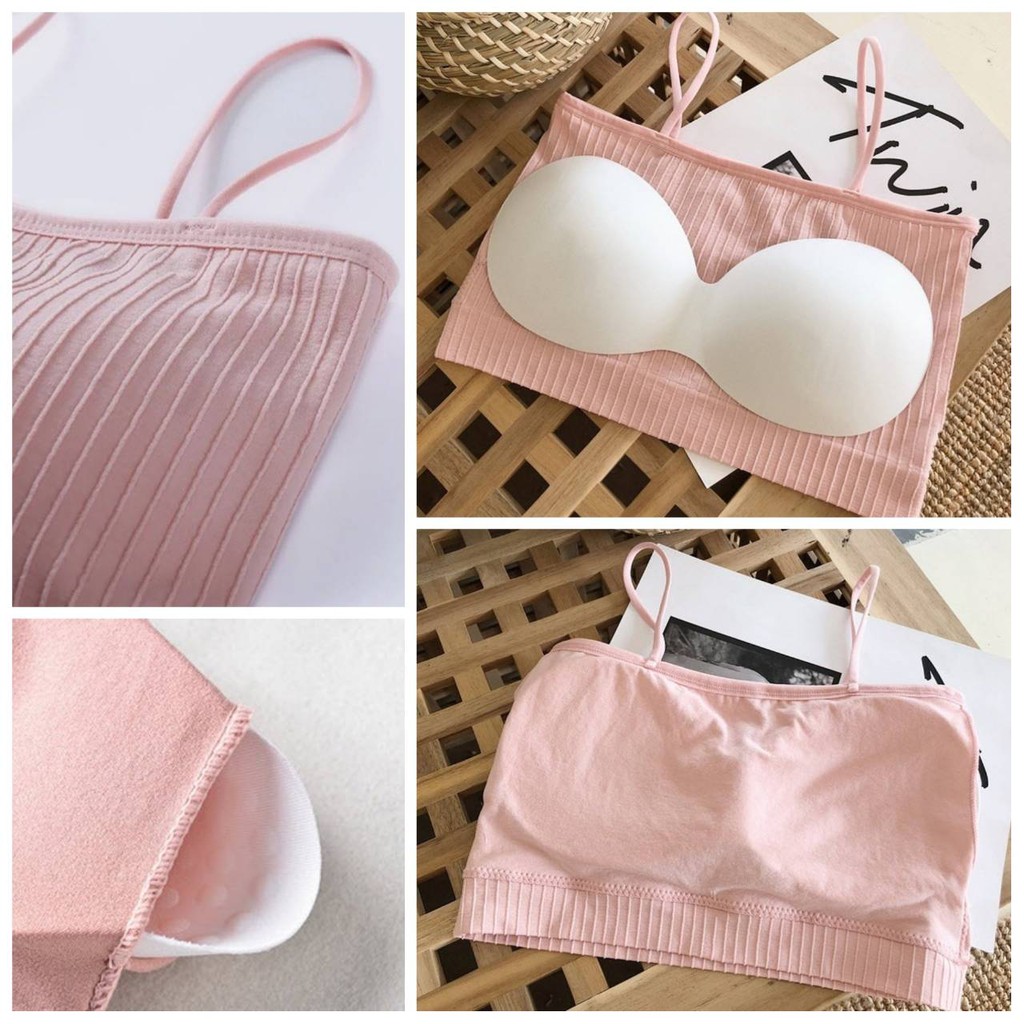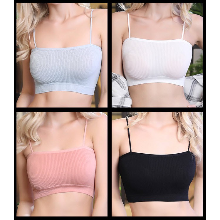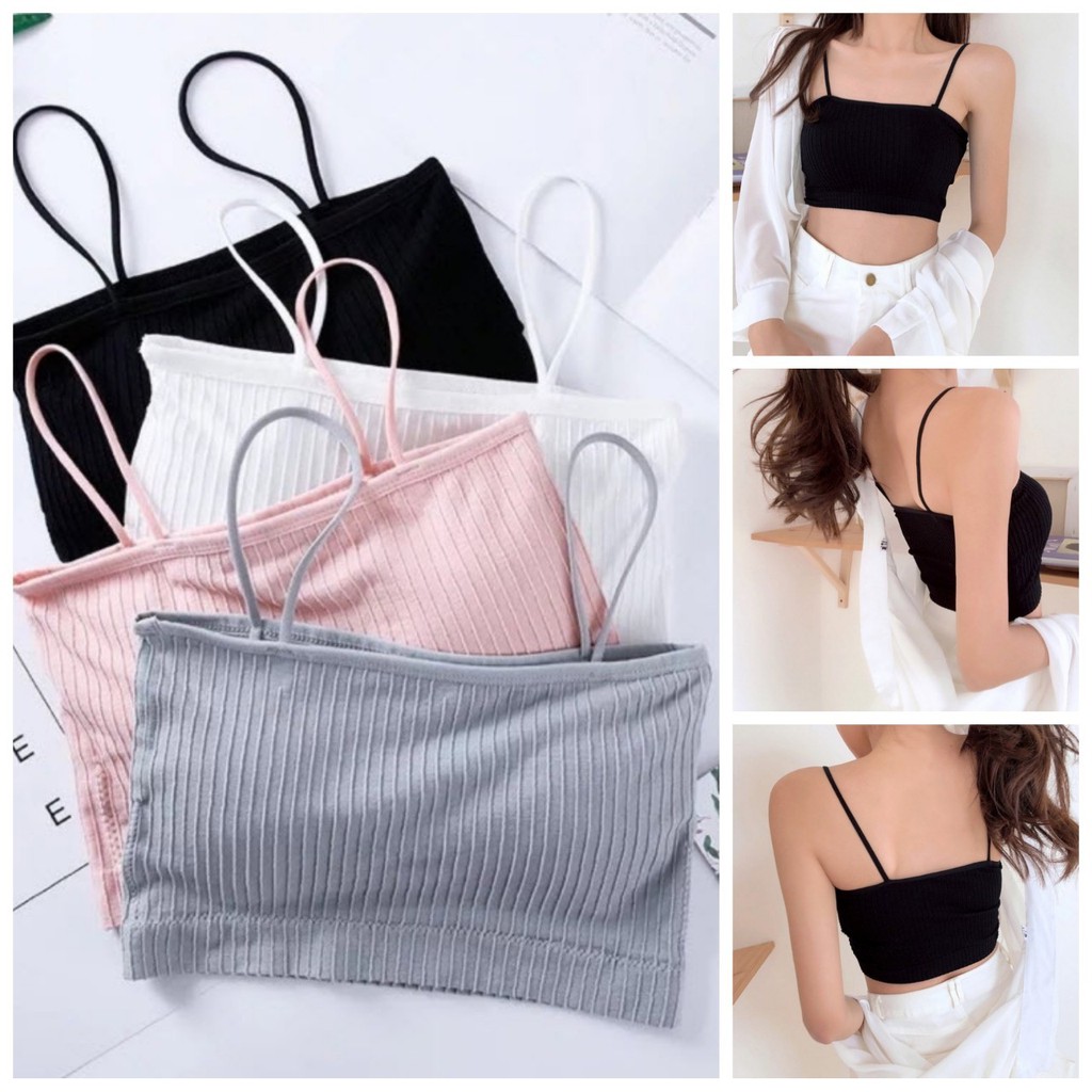 สายเดี่ยว ลายผ้าร่อง เกาะอก สปอร์ตบรา เสริมฟองน้ำ ผ้านุ่ม ระบายอากาศ เกรดพรีเมี่ยม