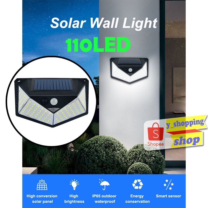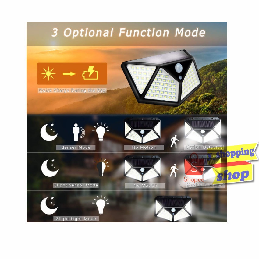 Solar motion sensor light 100 LED 3 โหมด ไฟออก4ทาง ไฟติดผนังโซล่าเซลล์พลังงานแสงอาทิตย์ เซ็นเซอร์ *