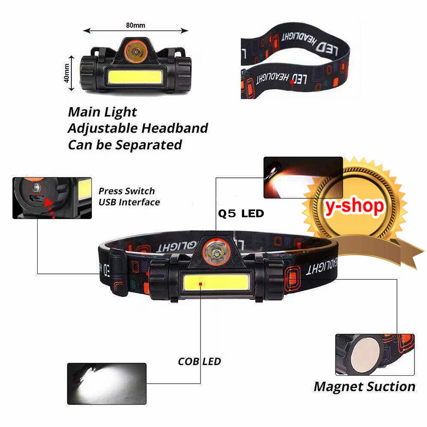 101 ไฟฉายคาดหัว Q5+COB Outdoor USB Rechargeable พ ร้อมแม่เหล็ก