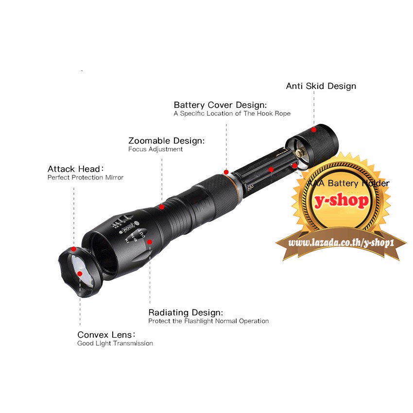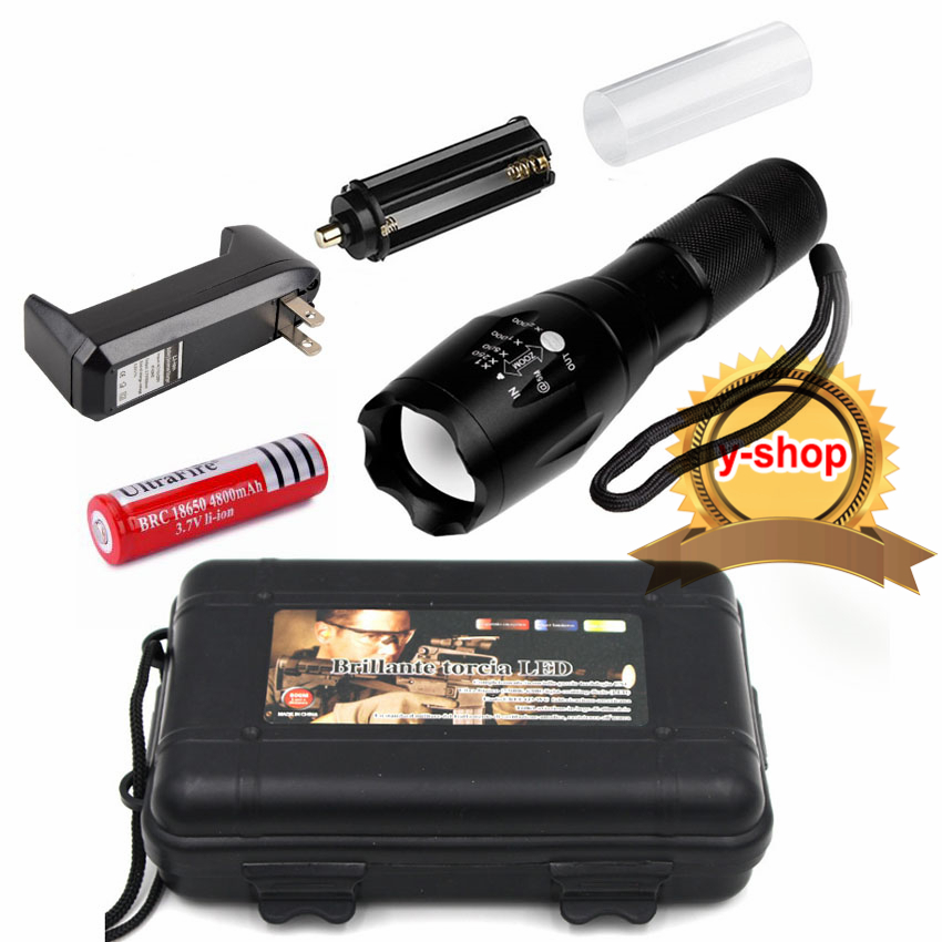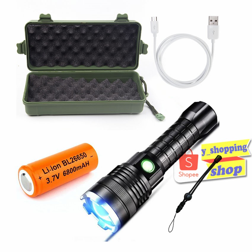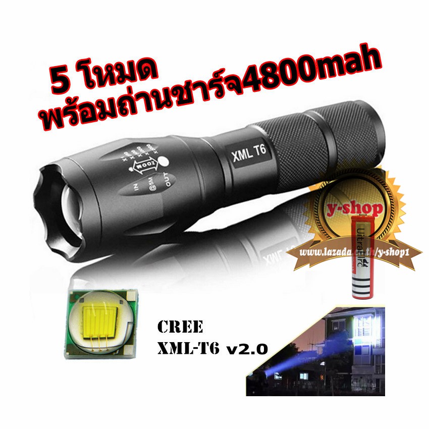 CREE XML T6 LED Zoomable Flashlight Torch 5 Modes ไฟฉาย แรงสูง ซูมได้ พร้อมอุปกรณ์ครบชุด พร้อมถ่านชาร์จ4800mah*
