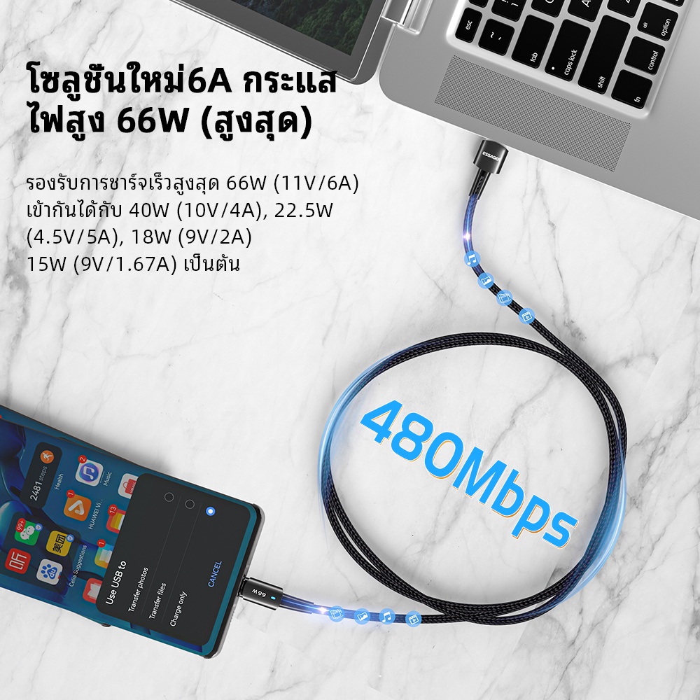 Essager 66W 6A สายชาร์จเร็วมาก USB Type C สายชาร์จข้อมูล สําหรับ Huawei OPPO