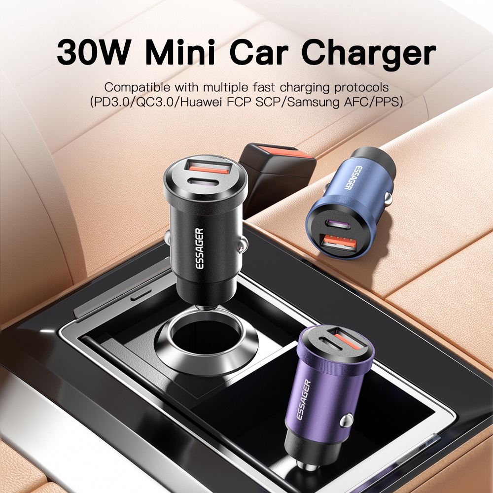 Essager ที่ชาร์จโทรศัพท์มือถือ 30W USB Type-C Mini ชาร์จเร็ว 3.0 สําหรับ iP Huawei Auto Type C PD 3.0