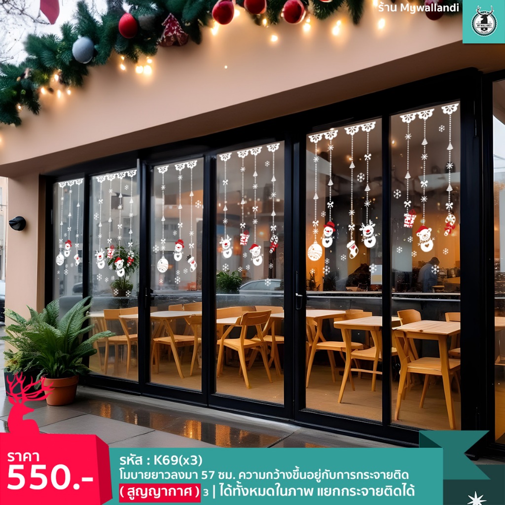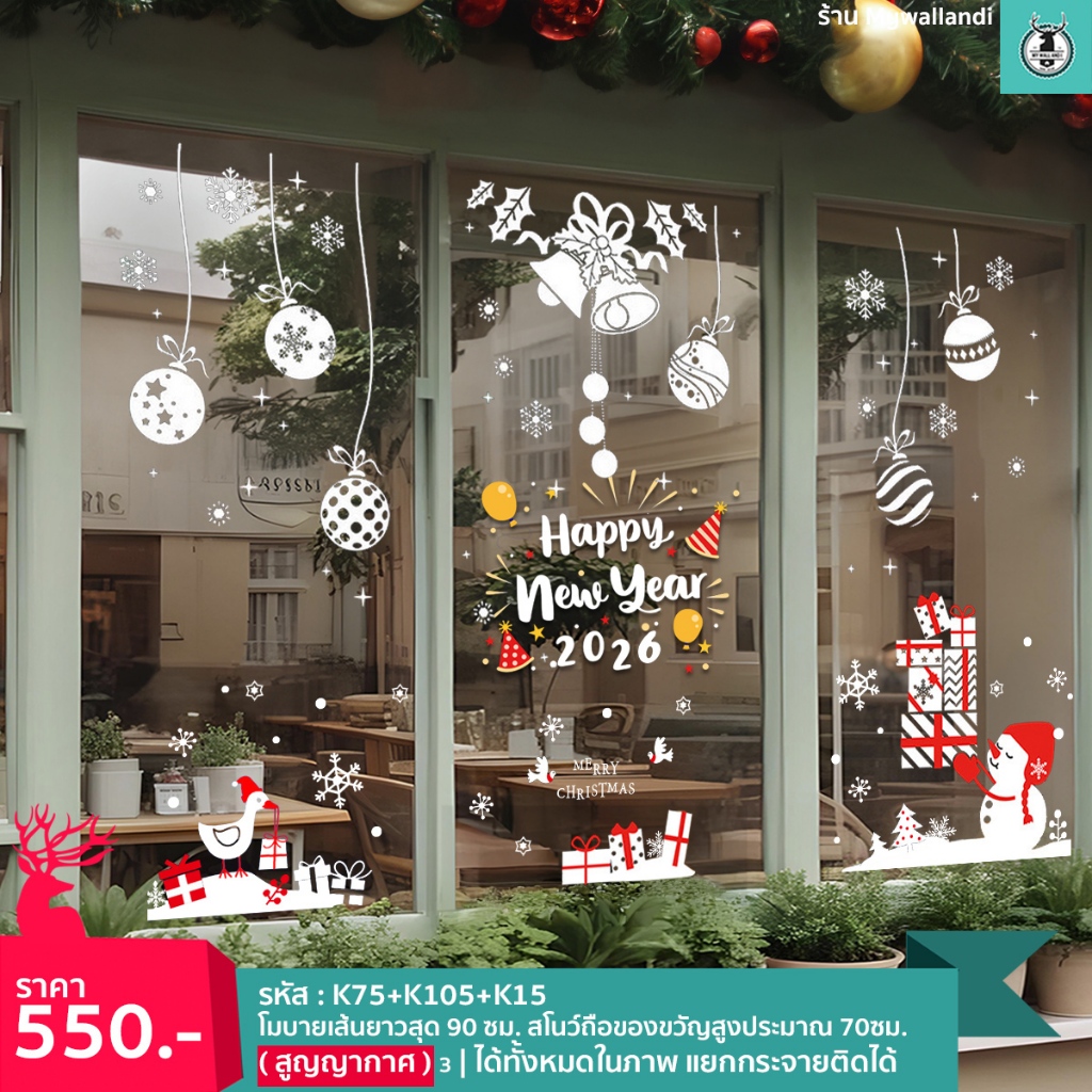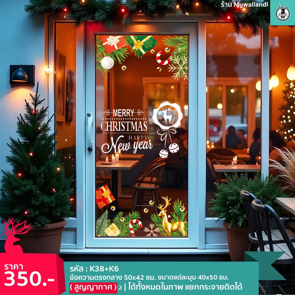 🌲สติ๊กเกอร์สูญญากาศติดกระจก (แบบไม่มีกาว) เทศกาลChristmas ปีใหม่2026 ตกแต่งร้าน ส่งด่วนจากกทม.