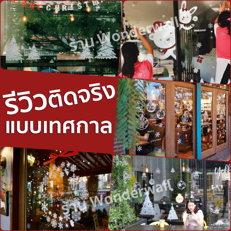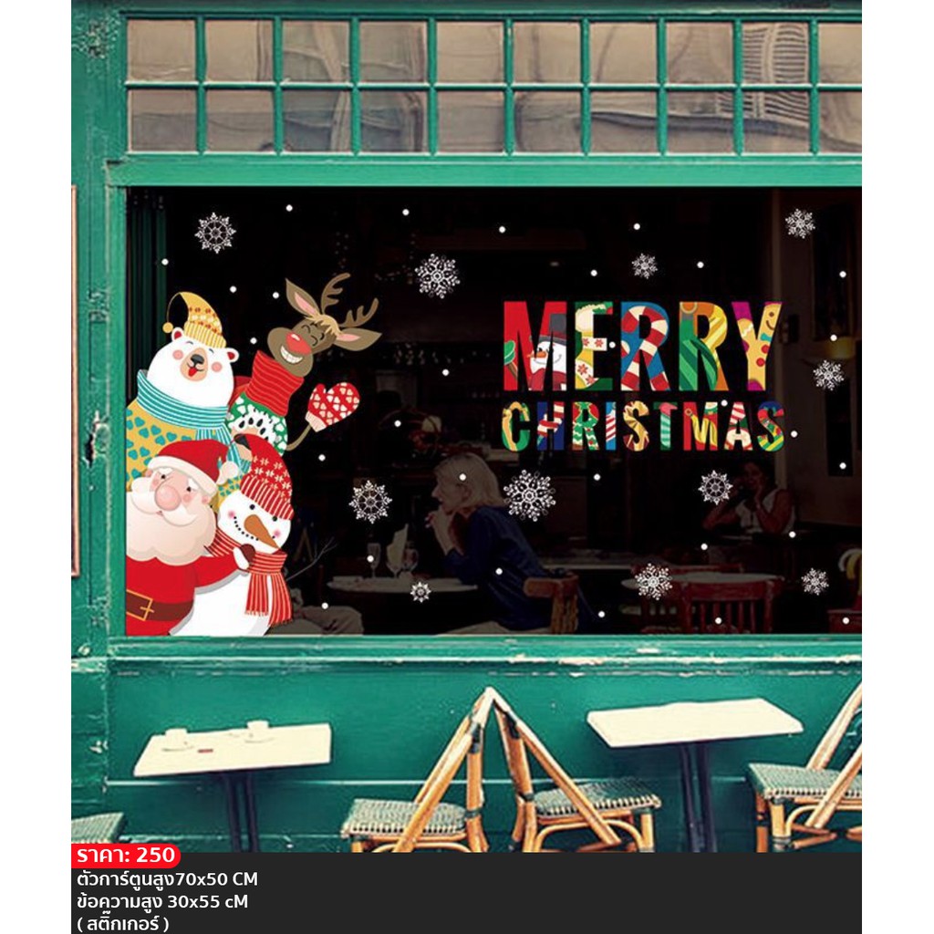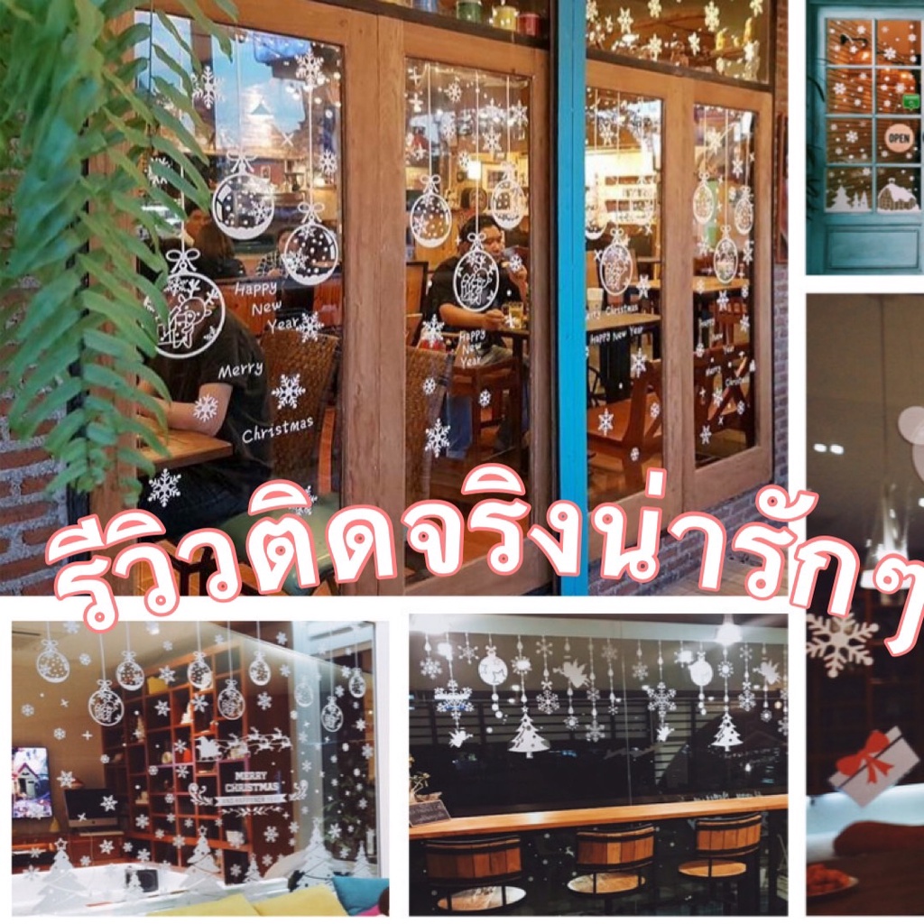 S19🌲 สติ๊กเกอร์ติดกระจก (แบบมีกาว) เทศกาลChristmas ปีใหม่2026 ตกแต่งร้าน ส่งด่วนจากกทม.
