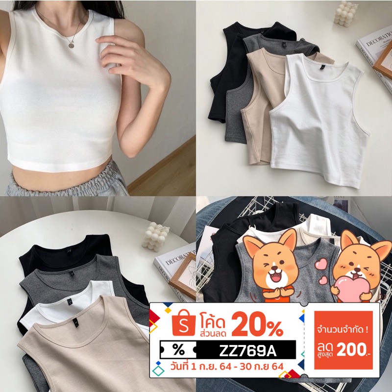 🌈[P1] 30สีพร้อมส่ง🌈Freesize | ครอปแขนกุด ผ้าไม่บาง ทรงสุดจึ้ง