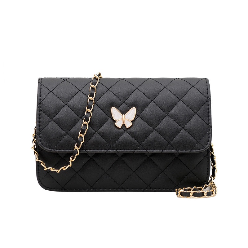 กระเป๋า สะพายข้าง หนังพรีเมี่ยม งานเกรด A ผู้หญิง แฟชั่นสายสะพายโซ่สีทอง-รุ่น1001