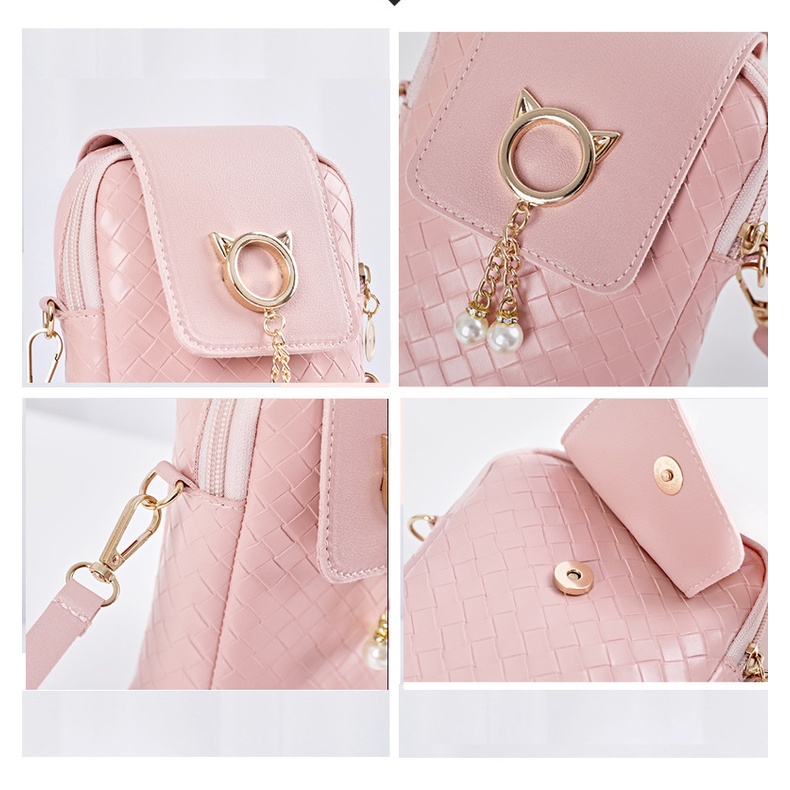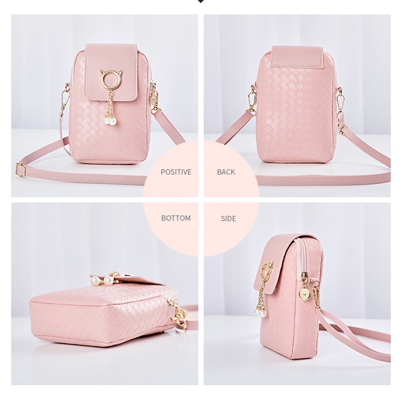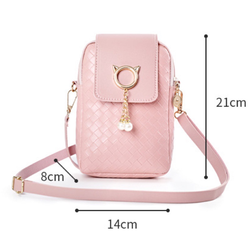 กระเป๋าสะพายข้าง แนวตั้ง ใสโทรศัพท์มือถือ สไตล์เกาหลี หนังPU Shoulder Bag-CY641