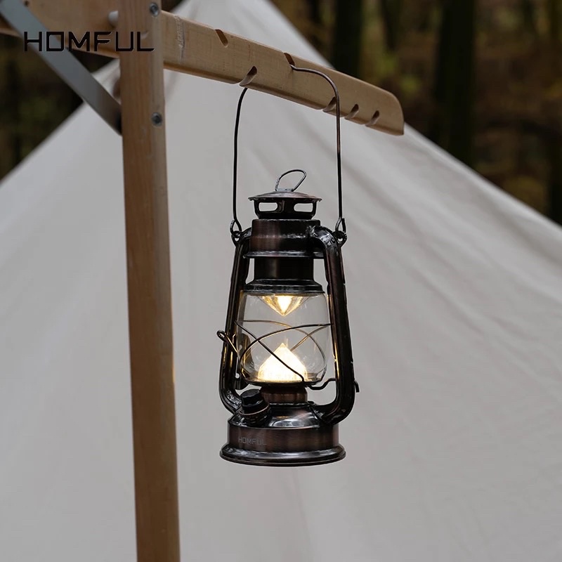 ตะเกียง Homful vintage LED ชาร์จ ใช้งานได้ยาว15hr. มีความแข็งแรง โครงทำจากอลูมิเนียม น้ำหนักเบา