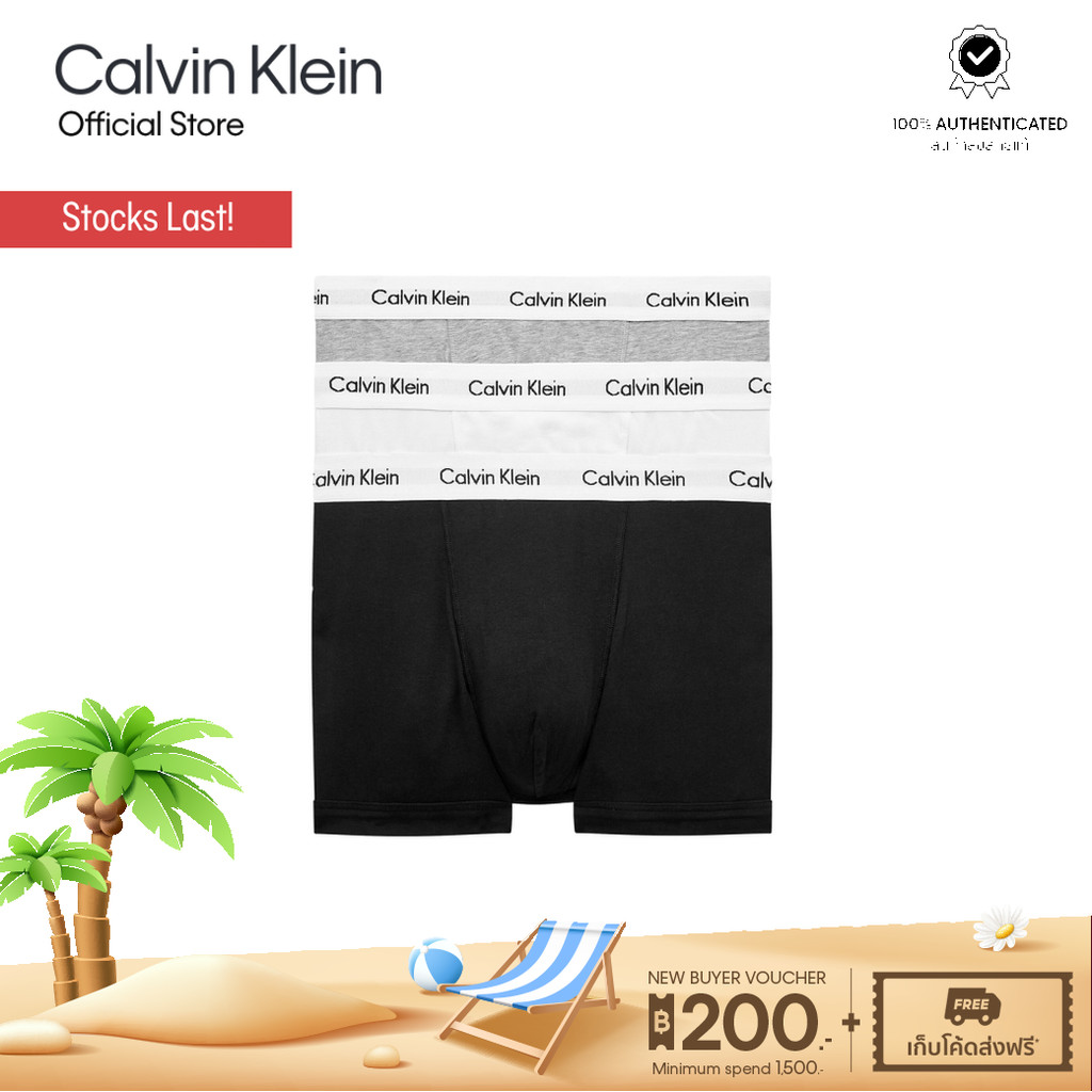 Calvin Klein กางเกงในชาย Cotton Stretch แพ็ค 3 ชิ้น ทรง Low Rise Trunk รุ่น U2664 998 - สีหลากสี