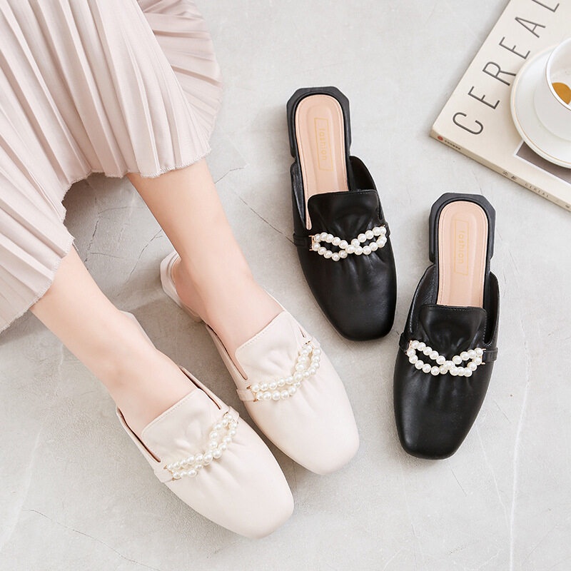 รองเท้าคัทชูผู้หญิง รองเท้าเปิดส้น สร้อยมุก ใหม่ พร้อมส่ง งานสวยมากค่า