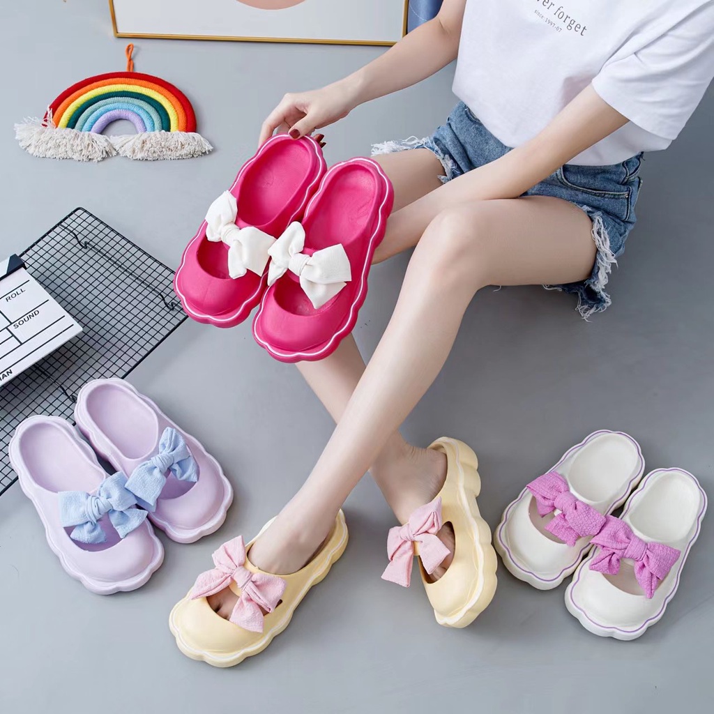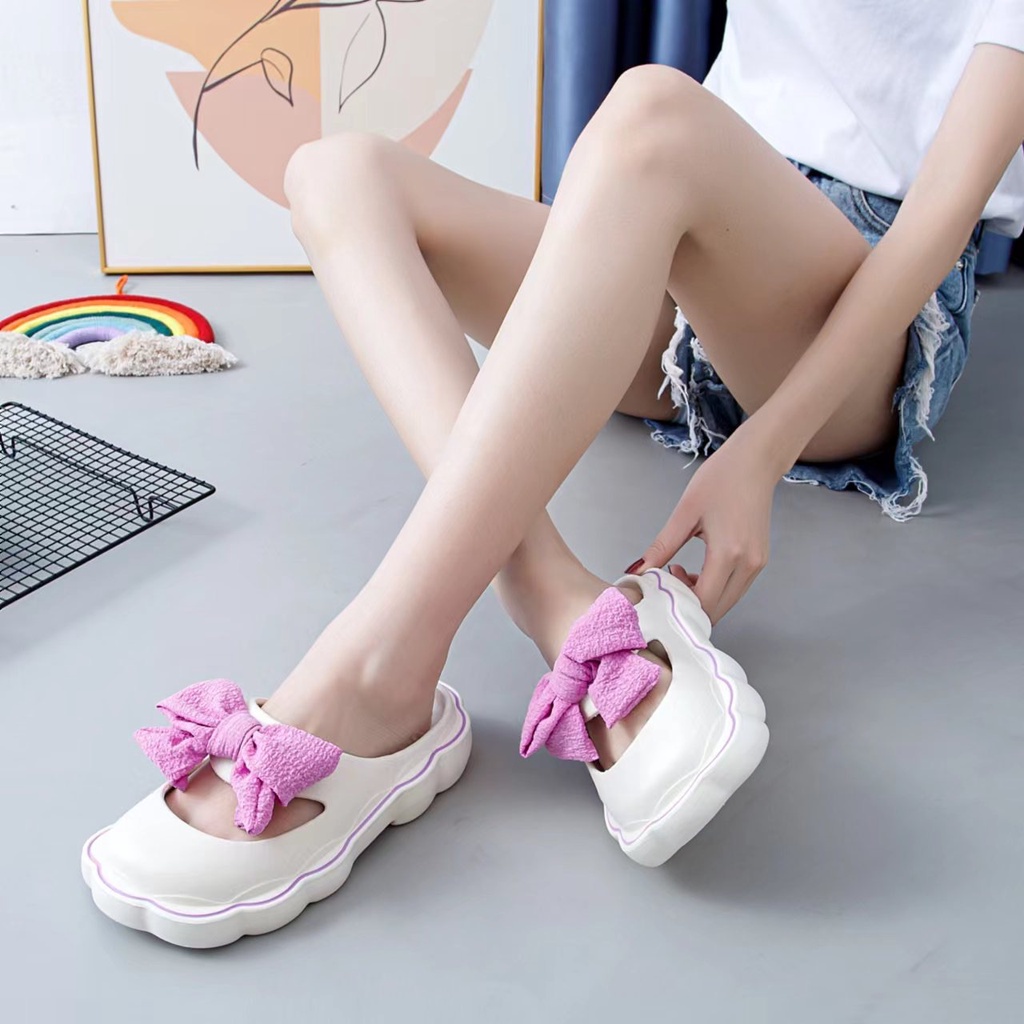 รองเท้าแฟชั่นเกาหลี โบว์หวาน สวมส้นผู้หญิง