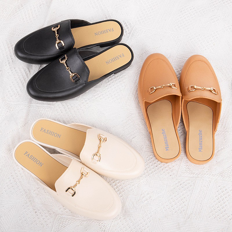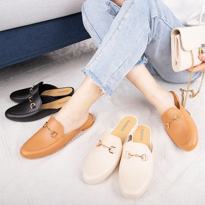รองเท้าคัทชูผู้หญิงยางหนังนิ่ม แฟชั่นมี3สี ปิดหัวเปิดส้น พื้นแบนนิ่มสวมใส่สบาย รุ่น X4