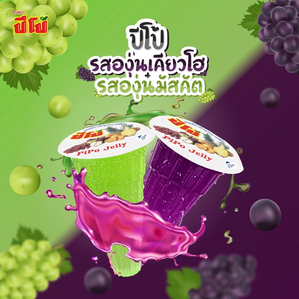 Pipo ปีโป้ กลิ่นองุ่นเคียวโฮ องุ่นมัสคัต เยลลี่ปีโป้ Kyoho & Muscat Grape (23.5 กรัม x 70 ถ้วย)