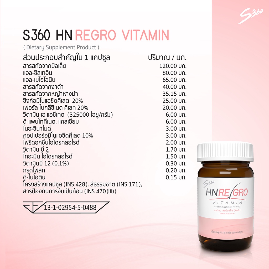 HN Regro Vitamin วิตามินผมลดผมร่วง เพิ่มการงอกใหม่ของผม