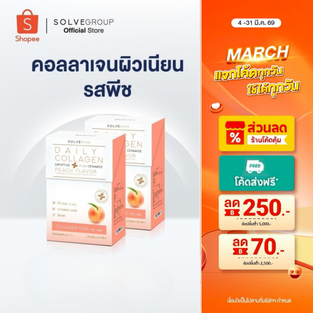 Daily Collagen Dipeptide Plus Ceramide รส พีช 2 กล่อง