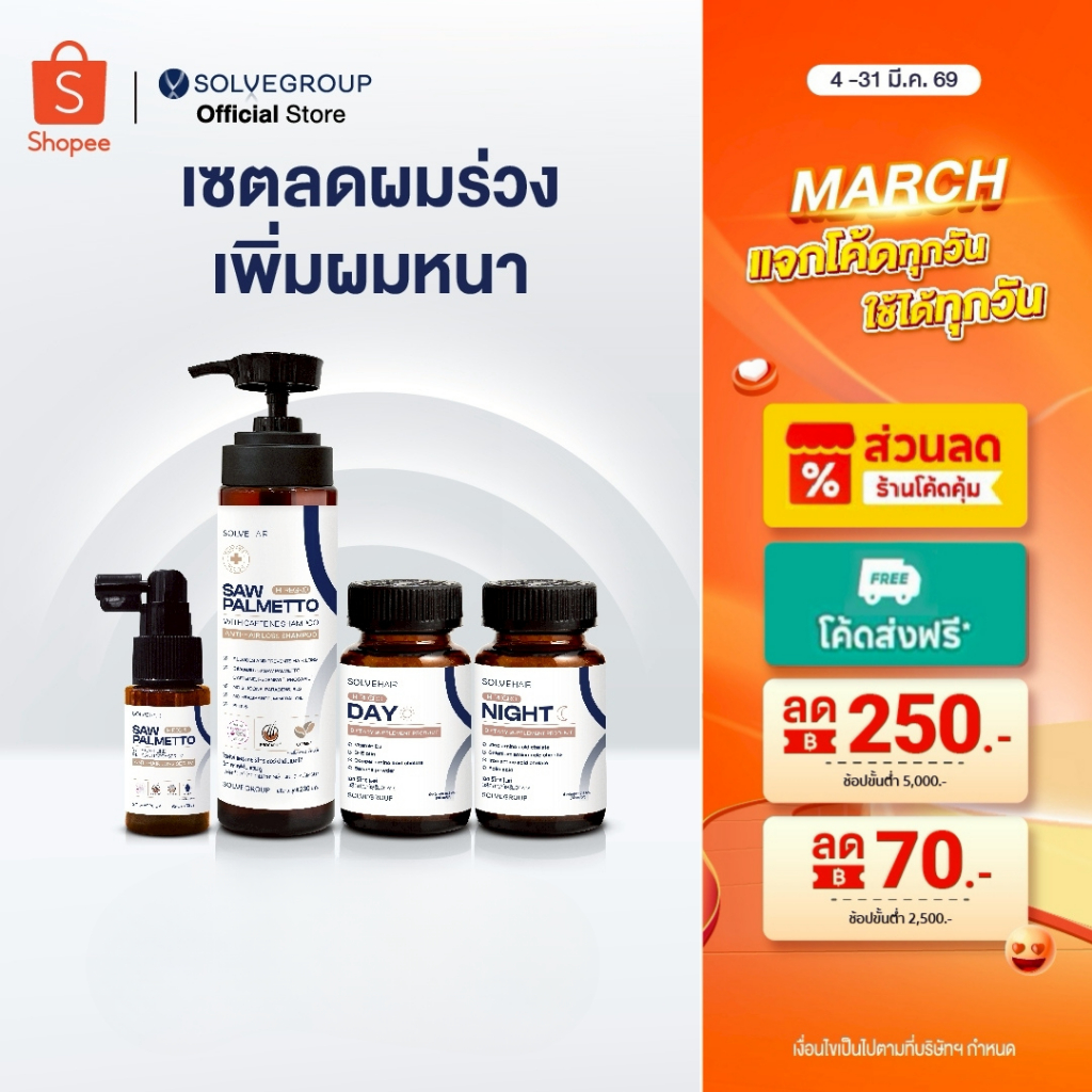 เซตลดผมร่วง ผมบาง เพิ่มการงอกใหม่ของเส้นผม Solve Hair Full Set
