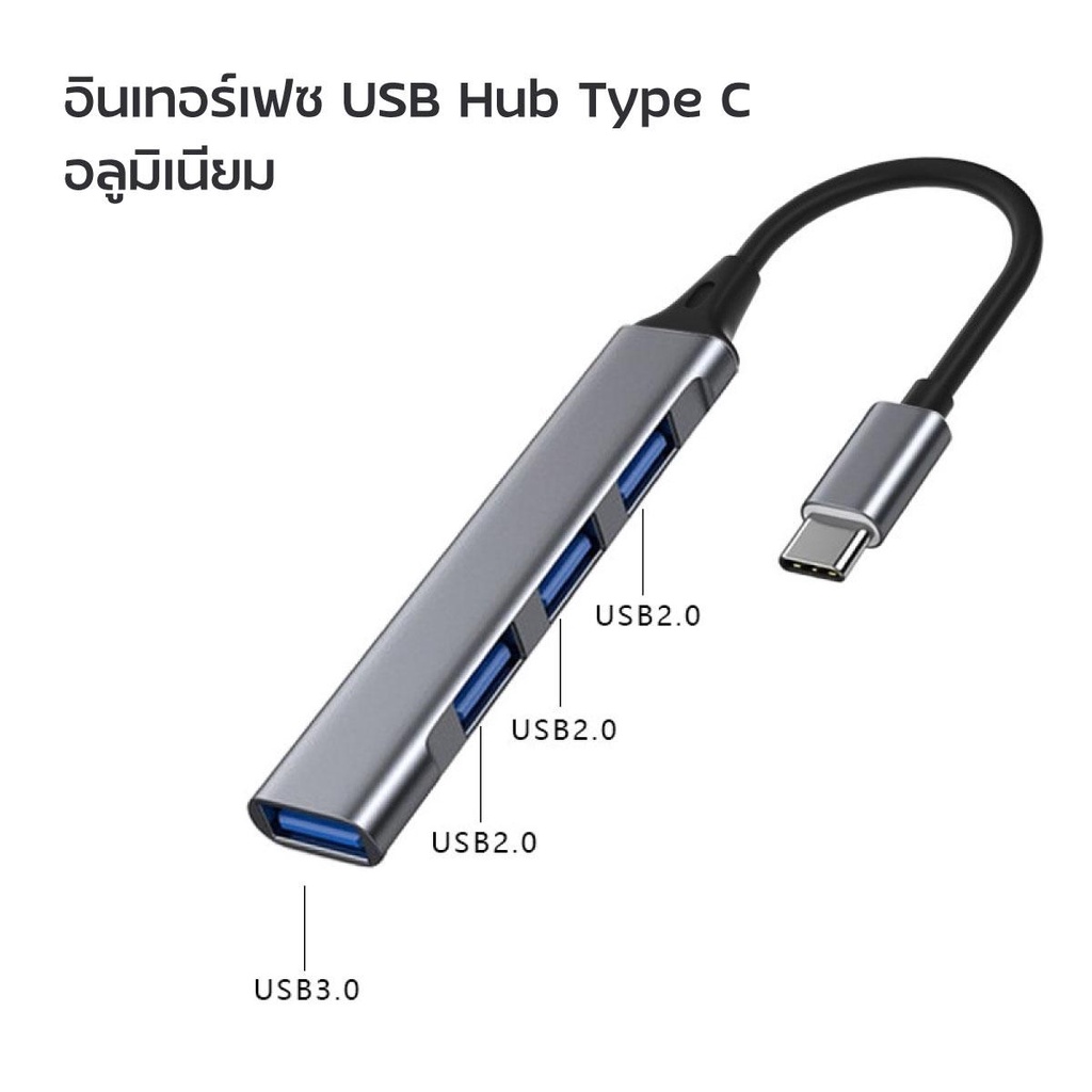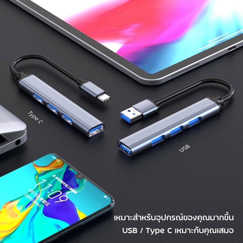 Port hub USB Type-C HUB USB 3.0 4 ช่องเสียบ สำหรับ PC แล็ปท็อปอุปกรณ์เสริมคอมพิวเตอร์ / COCO-PHONE