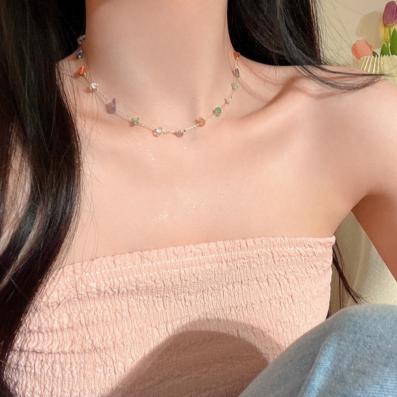 เครื่องประดับแฟชั่นเกาหลี สร้อยคอหินเรซิน อัลลอย หลากสี สําหรับผู้หญิง