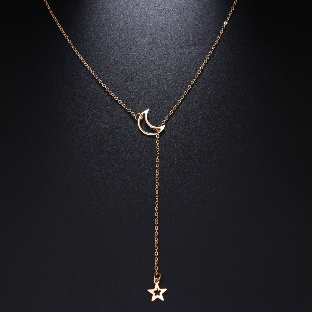 สร้อยคอจี้ดวงจันทร์และดาวหรูหรา แฟชั่น สำหรับผู้หญิง