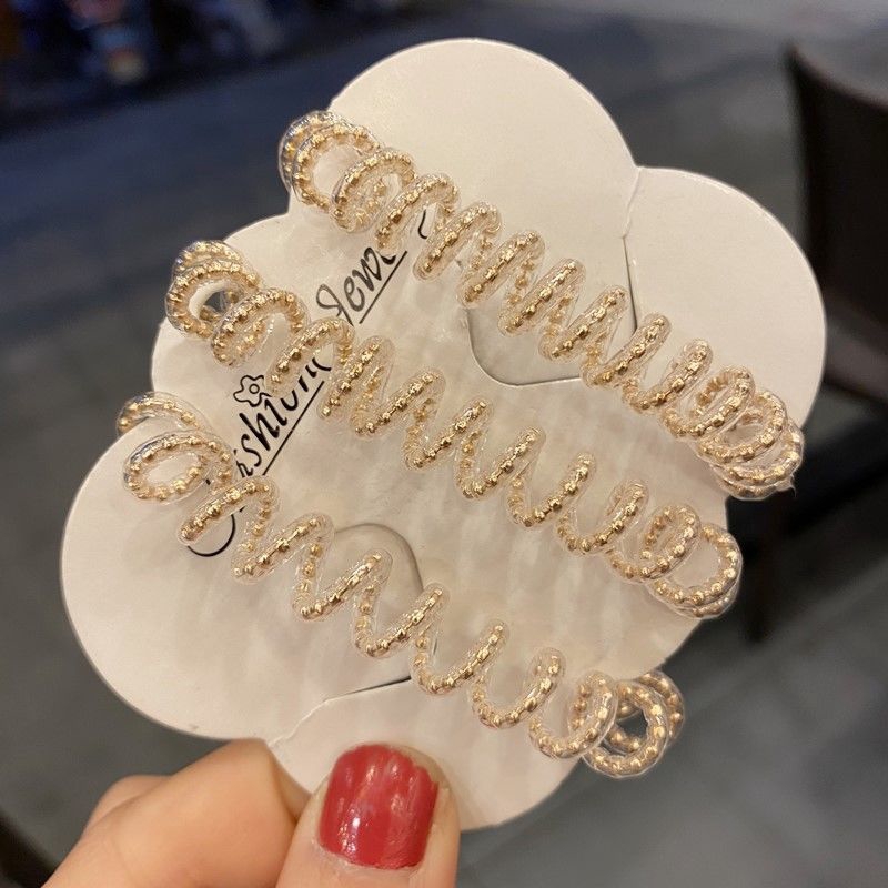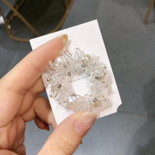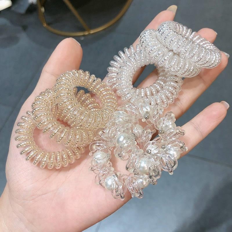 ยางรัดผมแบบเกลียว สีใส ประดับไข่มุก สไตล์เกาหลี สำหรับผู้หญิง