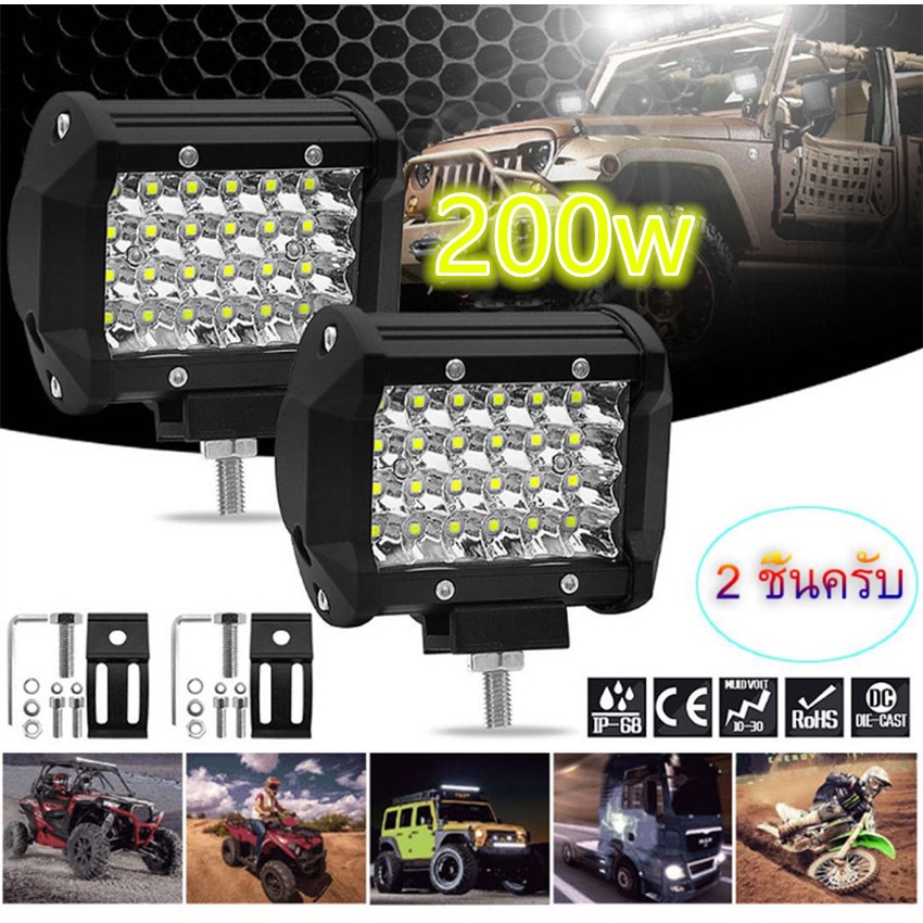 เเพค 2 ชิ้น สว่างตาเเตก! LED SPOT BEAM US 200Wไฟสปอร์ตไลท์รถยนต์ ไฟหน้ารถ ไฟท้าย ไฟช่วยตัดหมอก สว่างมาก 12V เเสงขาว