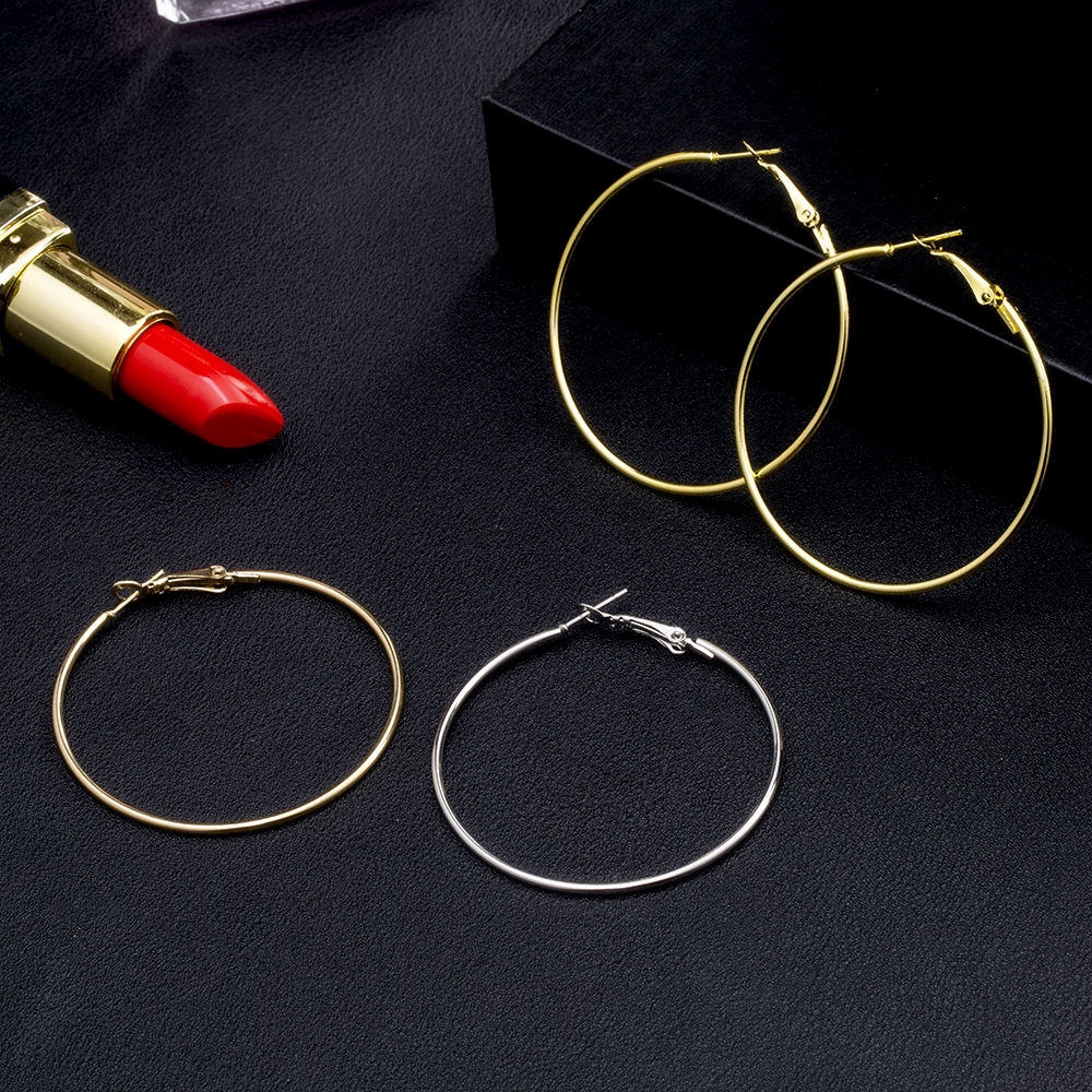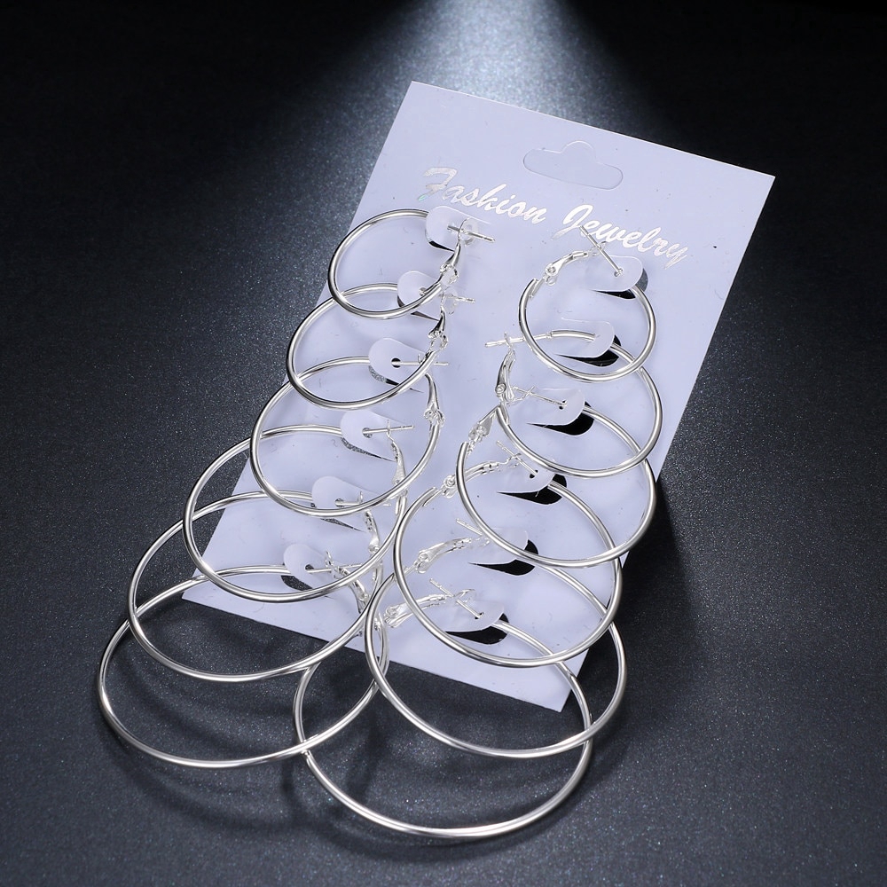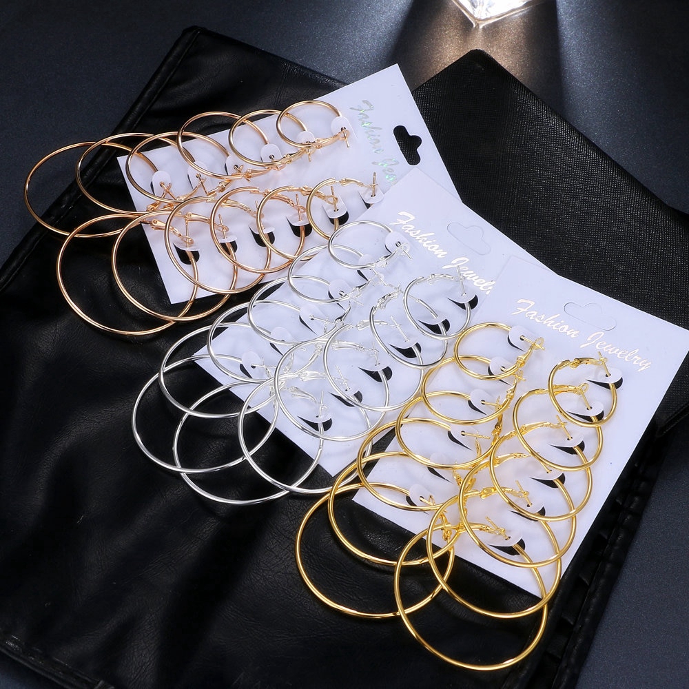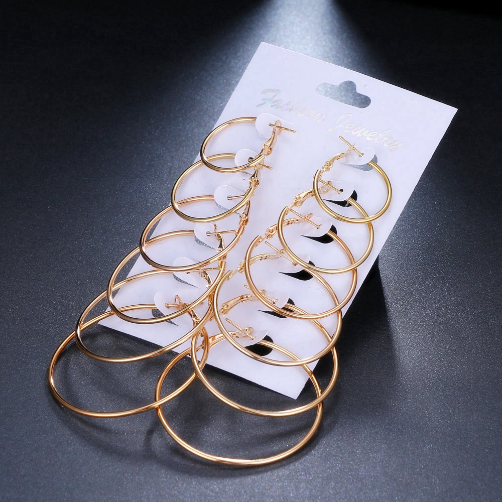 ชุดต่างหู ห่วงวงกลม หลายขนาด สีทอง/สีเงิน 6 คู่/ชุด(A14-01-3)