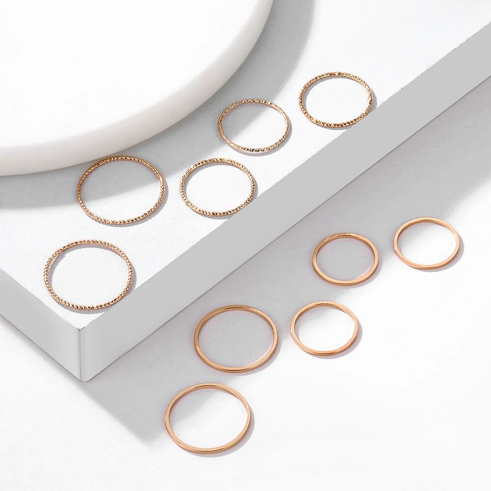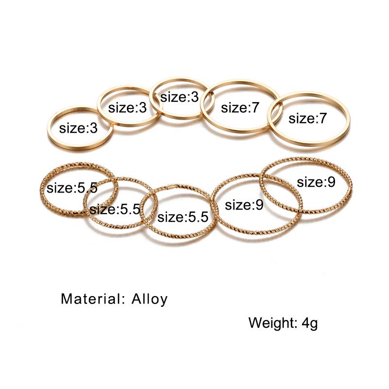 แหวนสวมนิ้ว แบบโลหะ เรียบง่าย แฟชั่นสไตล์พังก์ 10 ชิ้น